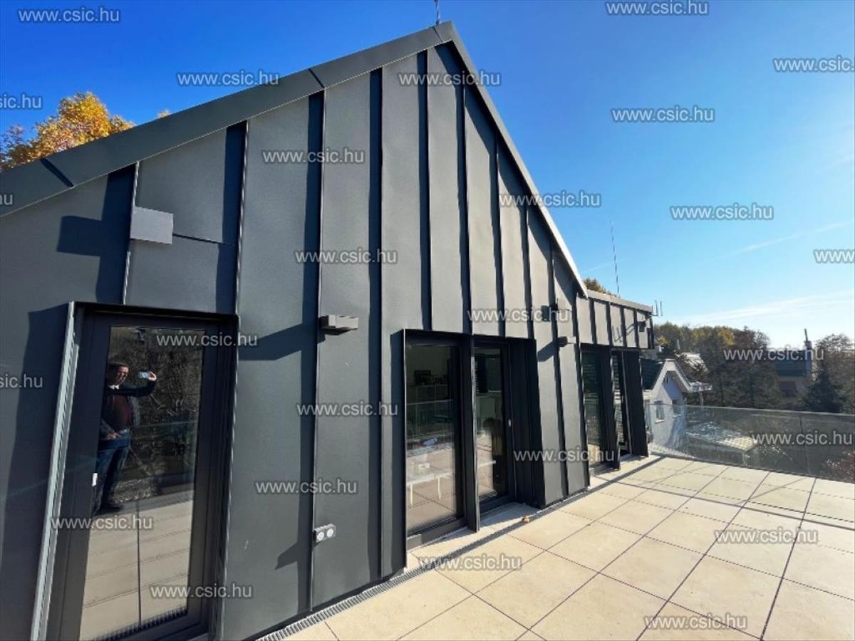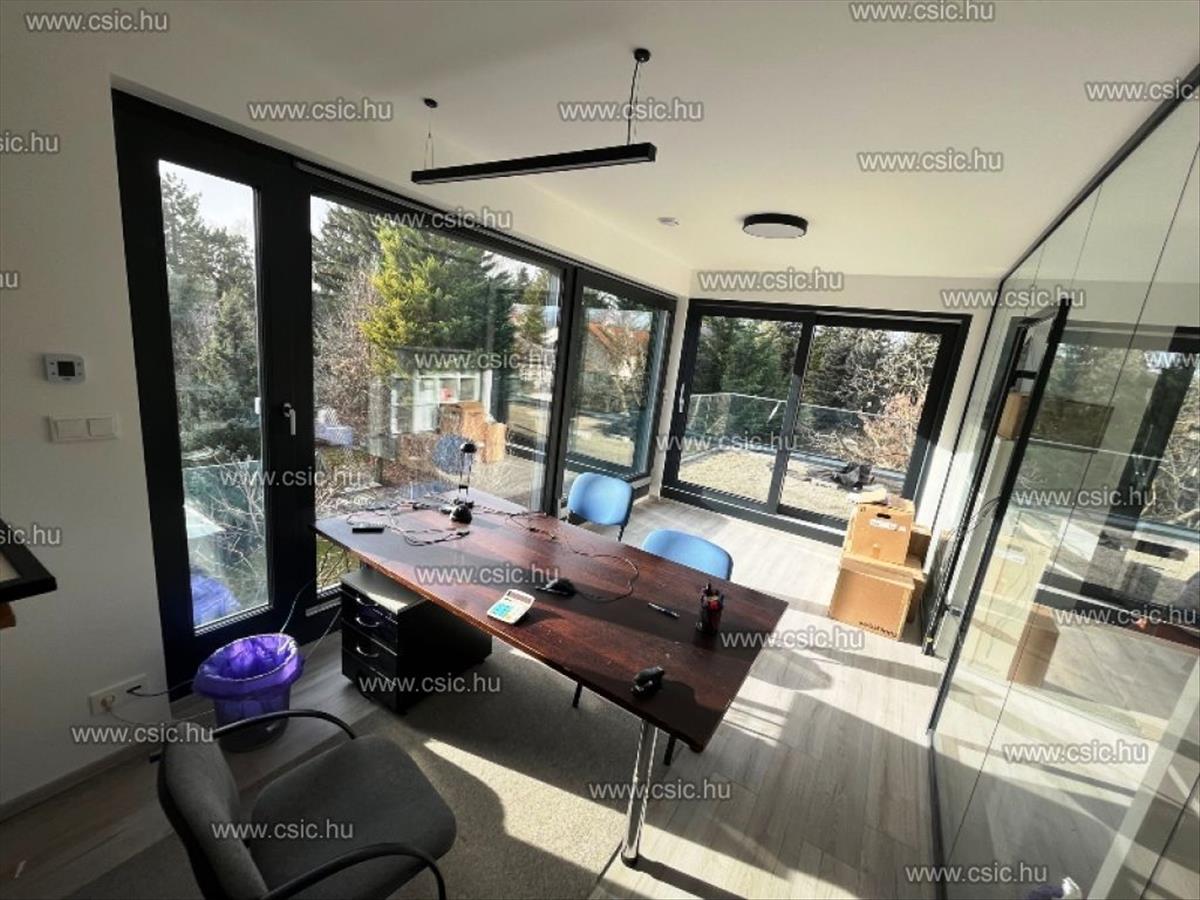 Az iroda könnyen átalakítható lakássá. Az üvegfalak gipszkarton falra cserélésével 4 szoba alakítható ki, a vizes blokkok adottak, a kialakult nagy nappaliból pedig a tolóajtókon keresztül léphetünk ki a nagy tetőteraszra, melyet a környező fák lombjai vesznek körbe. a jelenlegi konyha-étkező helyén akár plusz egy szoba és fürdő alakítható még ki, ennek gépészete elő van készítve.