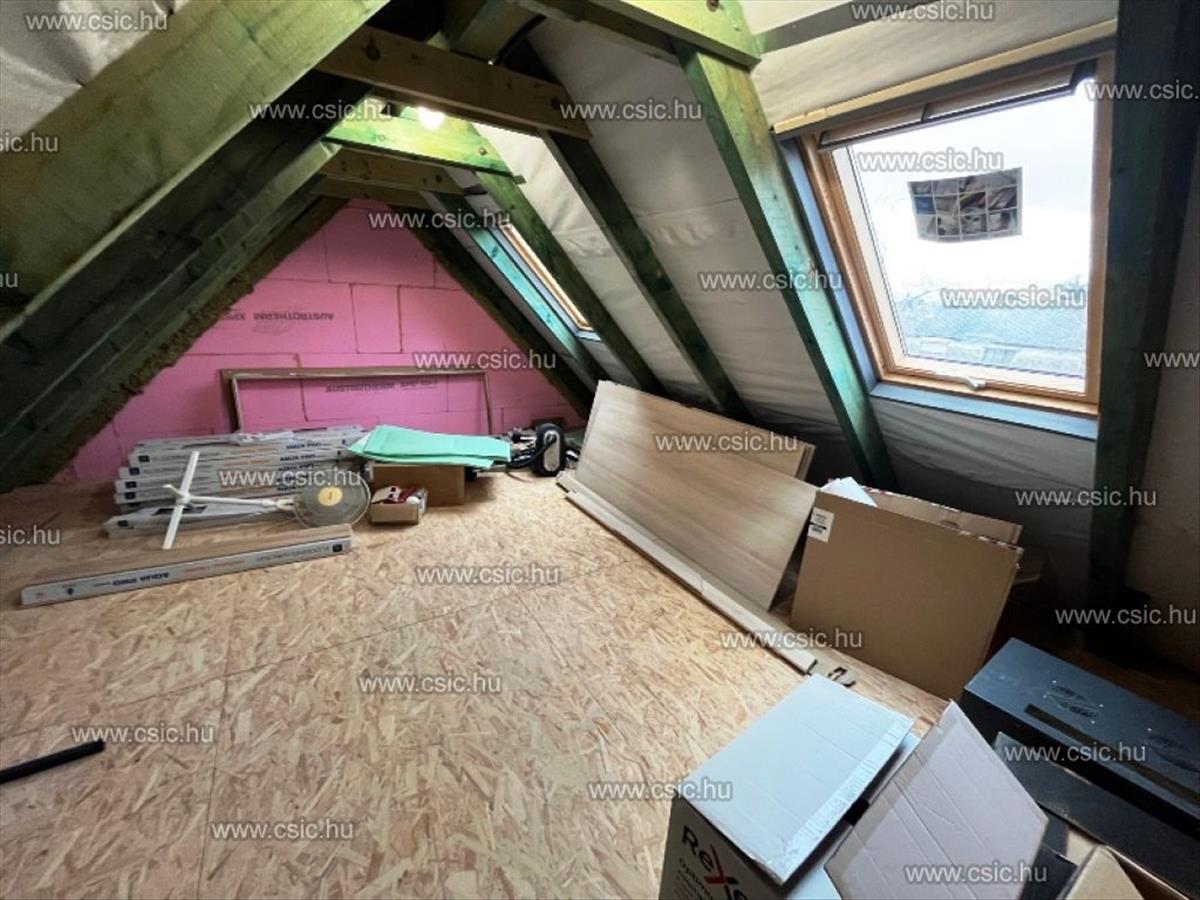 Az iroda feletti padlás saját használatban van, jelenleg tároló és a gépészeti helyiség is itt kapott helyet, itt lett kialakítva még 2 helyiség és egy fürdő.