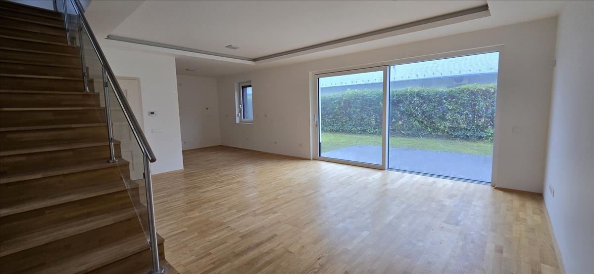 Hazaérve a garázsba való parkolás után az előkertből az előszobába érkezünk. Itt található egy gardrób és egy vendég wc, zuhanyzóval. Innen a tágas, amerikai konyhás nappaliba érkezünk, melyből egy hatalmas, elhúzható üvegajtón át, a csendes hátsó kertbe juthatunk.