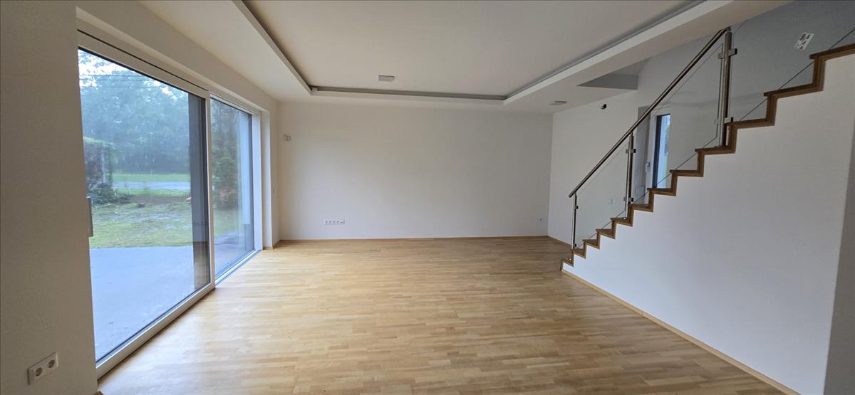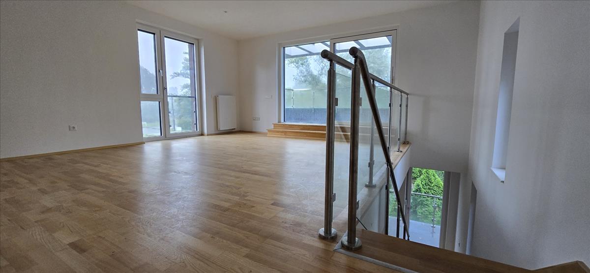 E szintről jutunk fel a 2. emeletre, ahol található egy második, nagyméretű nappali, egy hálószoba, zuhanyzó, háztartási helyiség, mellette egy konyha kialakítási lehetőség és egy nagyméretű terasz.