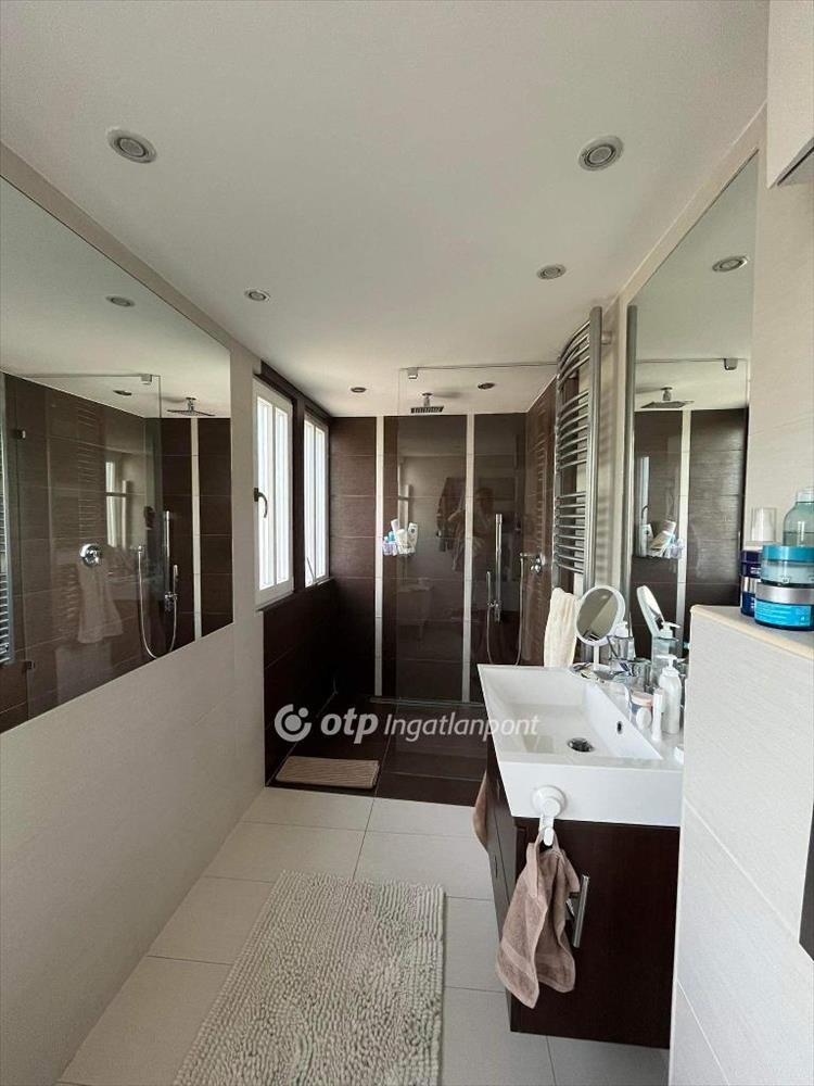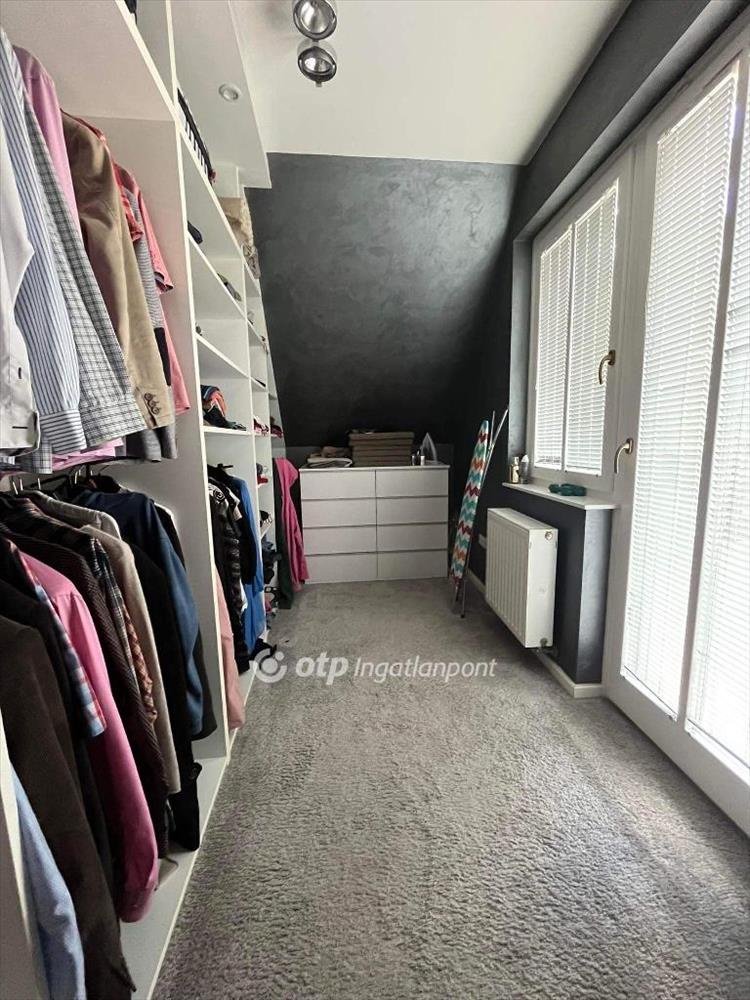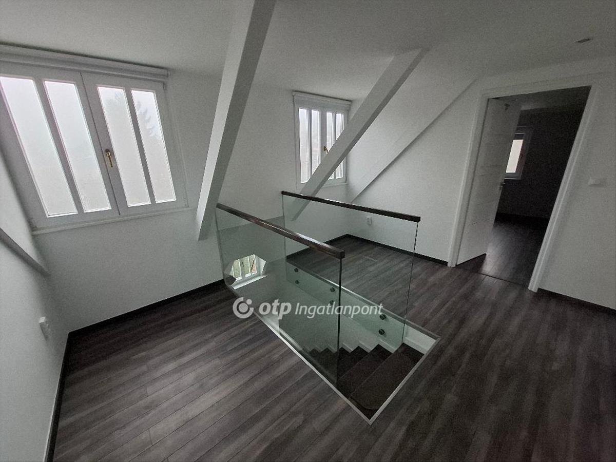 Élettér, ahol mindenki elfér: Az alsó szinten (90 nm) kapott helyet a hatalmas, napfényben úszó nappali, az étkező és a modern, részben szeparált konyha. Két hálószoba (az egyik jelenleg gardrób), egy kádas fürdőszoba és egy külön vendég-WC biztosítja a kényelmet.