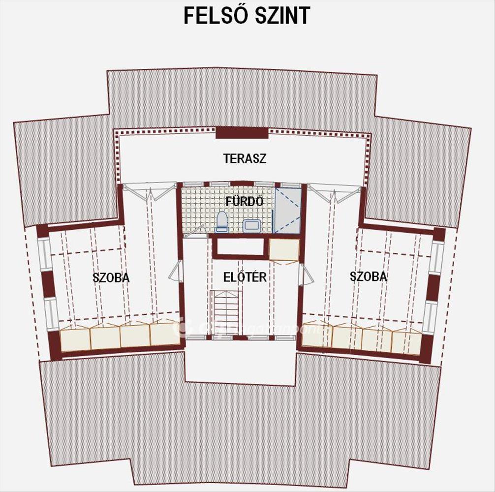 A felső szint (bruttó 50 nm) a gyerekek vagy vendégek birodalma lehet: két további hálószoba, tágas előtér és egy saját fürdőszoba található itt.