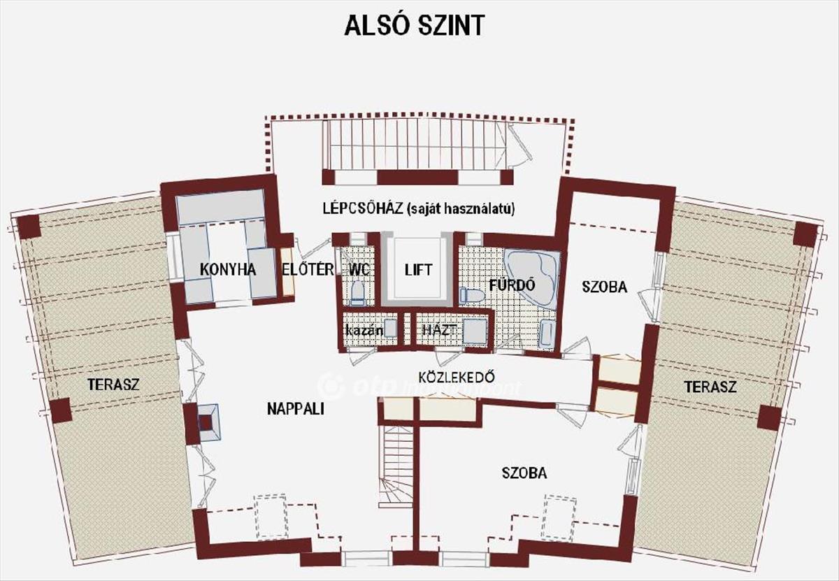 Privát szféra felsőfokon: a liftből kilépve egy gyakorlatilag saját használatú folyosóra érkezünk. a lakás belső kétszintes elosztása lehetővé teszi a generációk vagy a funkciók (pihenés vs. Közösségi élet) tökéletes elkülönítését.