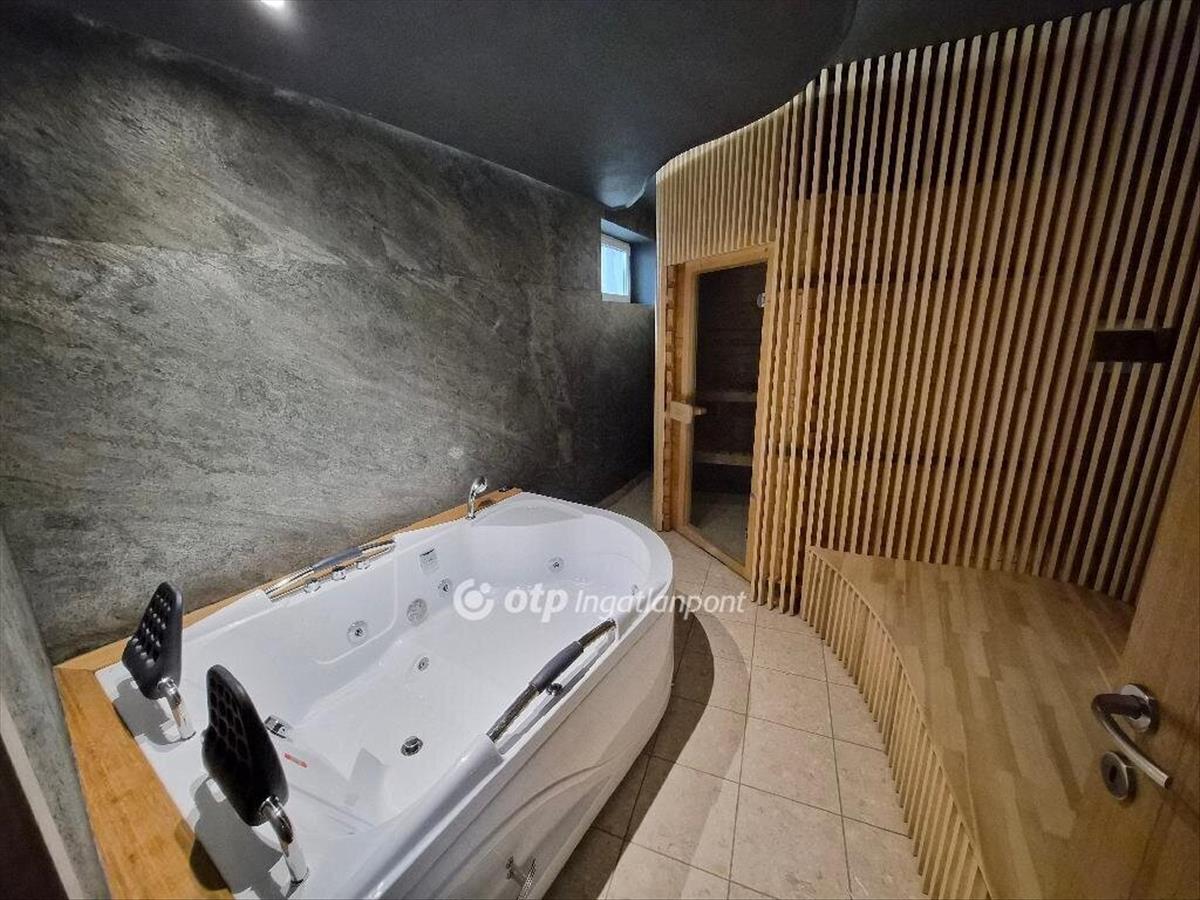 Az alagsorban gépészeti helyiség, háztartási rész, vendégszoba, valamint egy külön wellness tér található szaunával, jakuzzival és sófallal.
