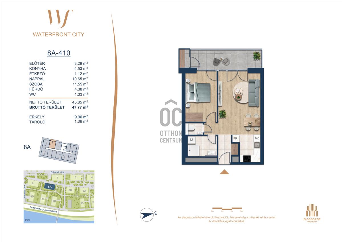 A Waterfront City egy új, modern városnegyed a 3. kerületben, ahol a természet közelsége és a városi kényelem tökéletes egyensúlyban van. a Duna-part közvetlen szomszédságában elhelyezkedő fejlesztés különleges atmoszférát kínál: a sétányt új épületek határolják, üzletekkel, kávézókkal és szolgáltatásokkal, amelyek élhető közösségi teret teremtenek.