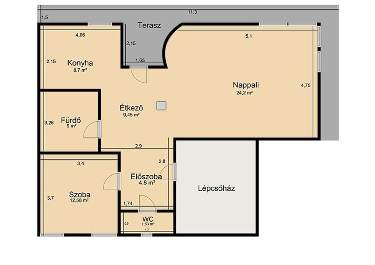 - Alapterület:77 m2