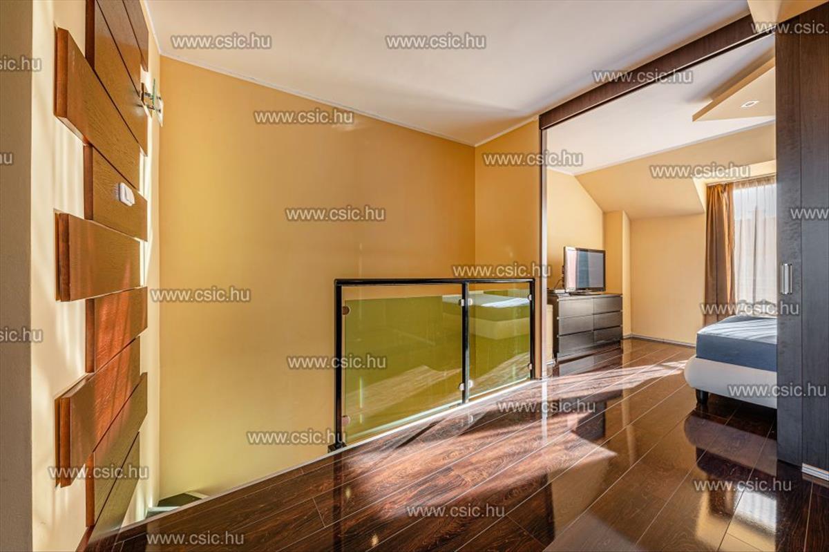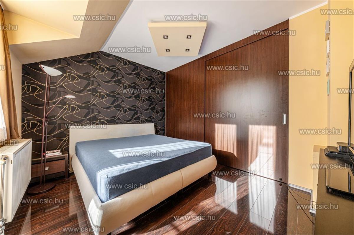 - az emeleten egy hálószoba, egy tágas dolgozószoba és egy zuhanyzós fürdőszoba, beépített szekrények kaptak helyet