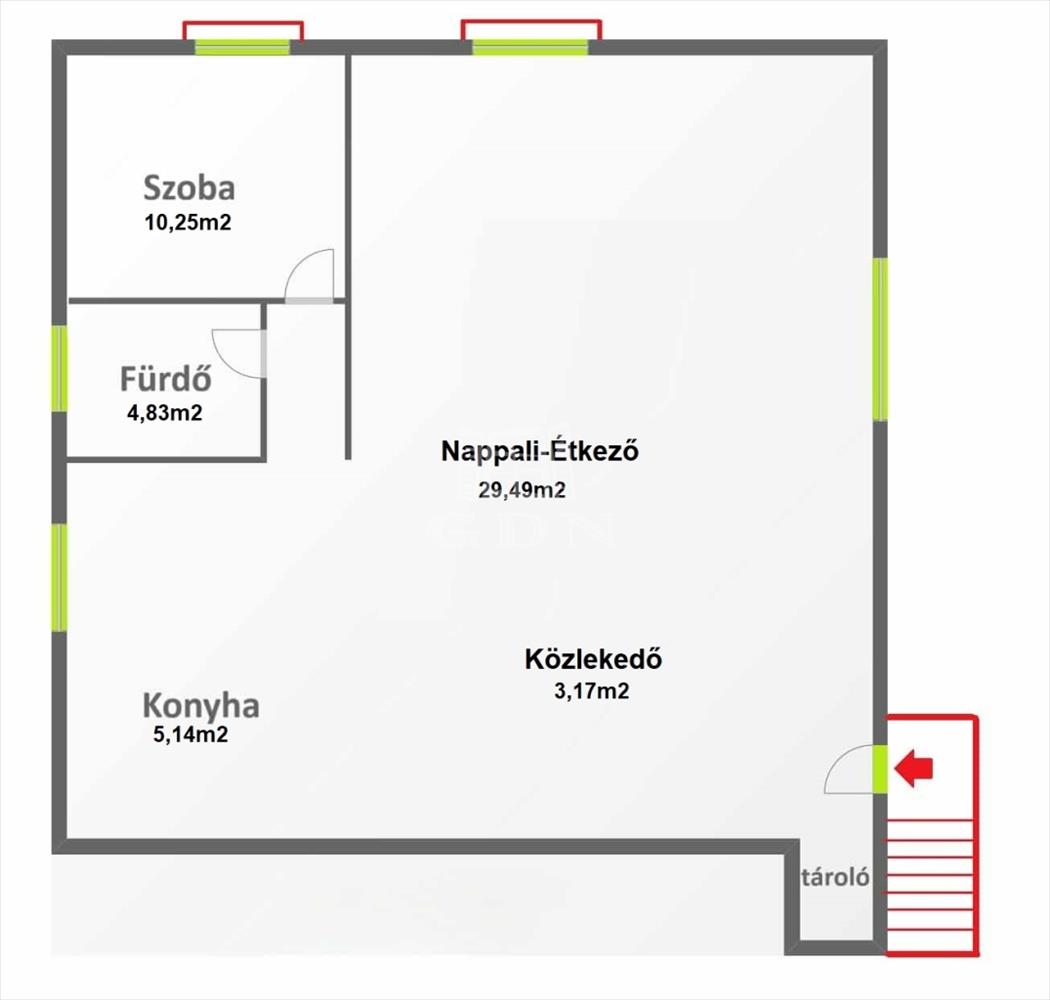 • Két külön bejárat → két önálló lakás, két bevételi lehetőség