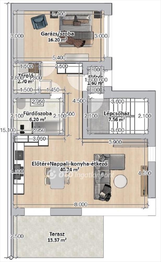 A megadott ár a kulcsrakész állapotra vonatkozik, 20%- kal szerződhető, a fennmaradó 80% birtokbaadáskor fizetendő.
