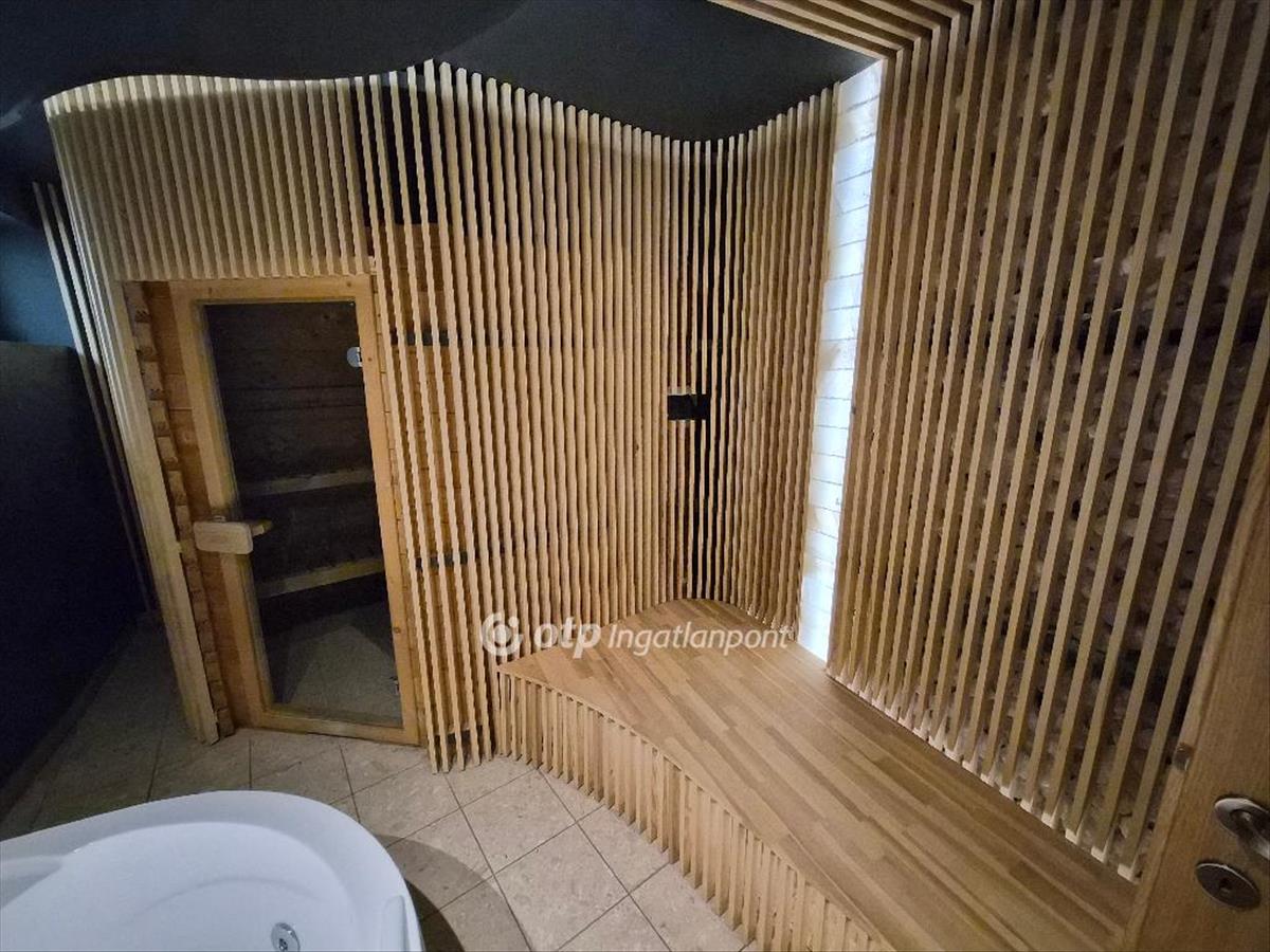 Az alagsorban gépészeti helyiség, háztartási rész, vendégszoba, valamint egy külön wellness tér található szaunával, jakuzzival és sófallal.