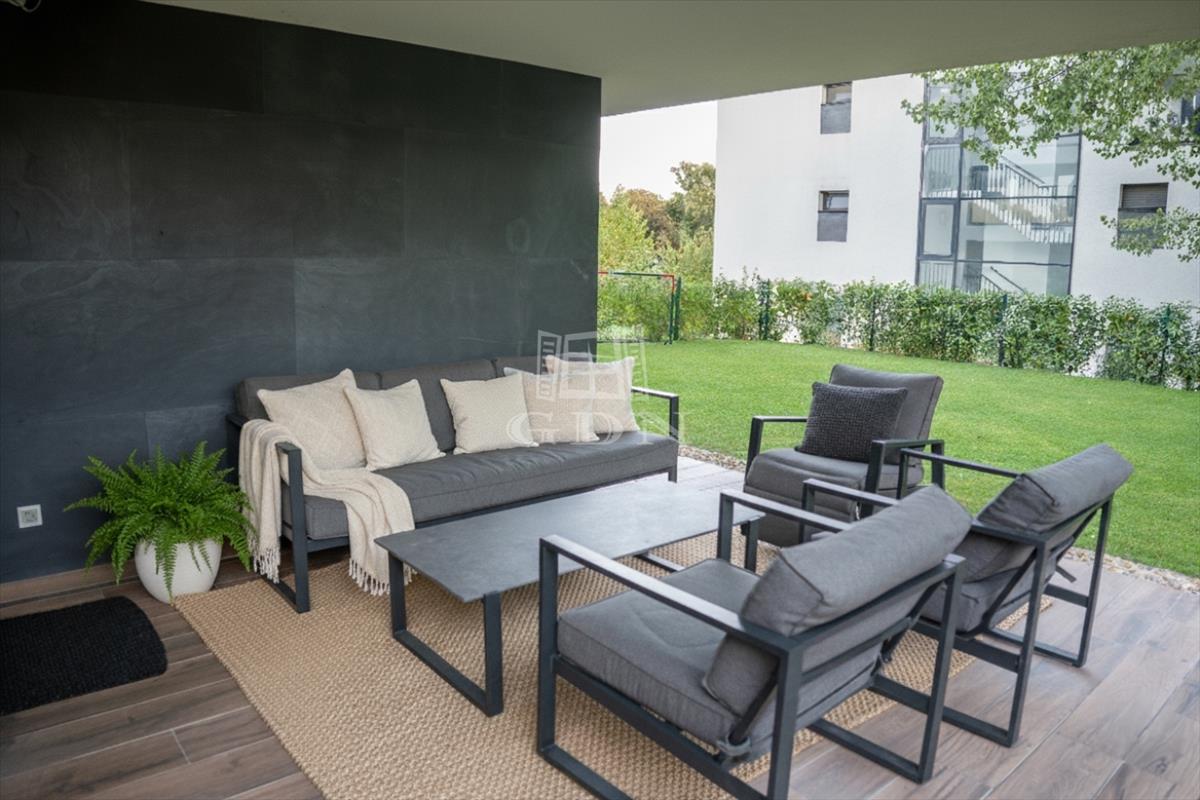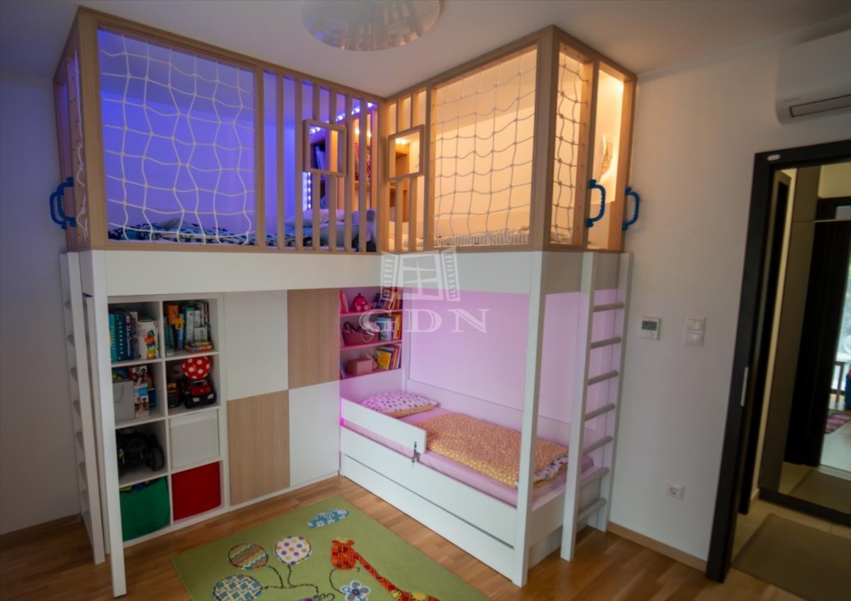 III. kerület Harsánylejtő városrész modern lakónegyedében, kertvárosi környezetben, jó közlekedés és ellátottság mellett, 2020-ban, magas műszaki tartalommal, minőségi kivitelezéssel épült, exkluzív megjelenésű, 3 szintes, 5 lakásos, liftes társasházban, 70 nm -es, földszinti elhelyezkedésű, nappali + 2 hálós, kivételes adottságokkal rendelkező, közvetlenül a szobákból nyíló saját 180 nm -es kerttel és 26 nm -es burkolt terasszal rendelkező, amerikai konyhás, dupla komfortos, napos, világos fekvésű, alacsony fenntartású, házközponti fűtésű, minden szoba saját termosztáttal ellátott, egyedi mérésű, újszerű állapotú, klimatizált, 3 rétegű alumínium nyílászárókkal valamint elektromos redőnyökkel szerelt, smart home funkcióval ellátott, egyedi megjelenésű, rugalmasan birtokba vehető, tehermentes, luxus lakás, beépített, prémium gépekkel felszerelt konyhával, kötelezően megvásárolandó 6, 5 nm -es tárolóval, és egy elektromos autó töltésére alkalmas 3x16 a. Falitöltővel felszerelt teremgarázs beállóval, kulturált lakóközösségű házban eladó.