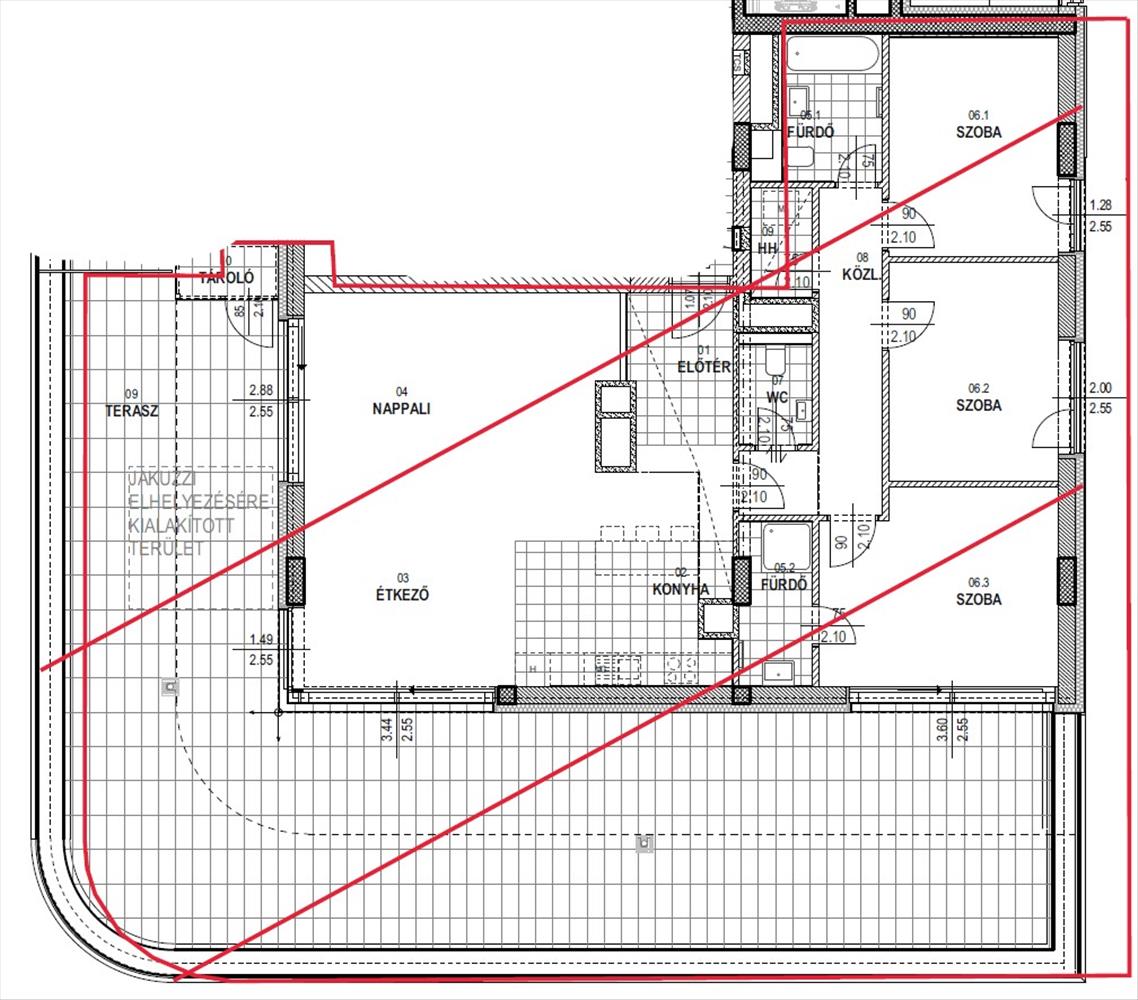 Nappali+ 3 hálószoba, duplakomforttal, háztrartási helyiséggel. 110Nm nettó lakótér + 117. 8Nm terasz.