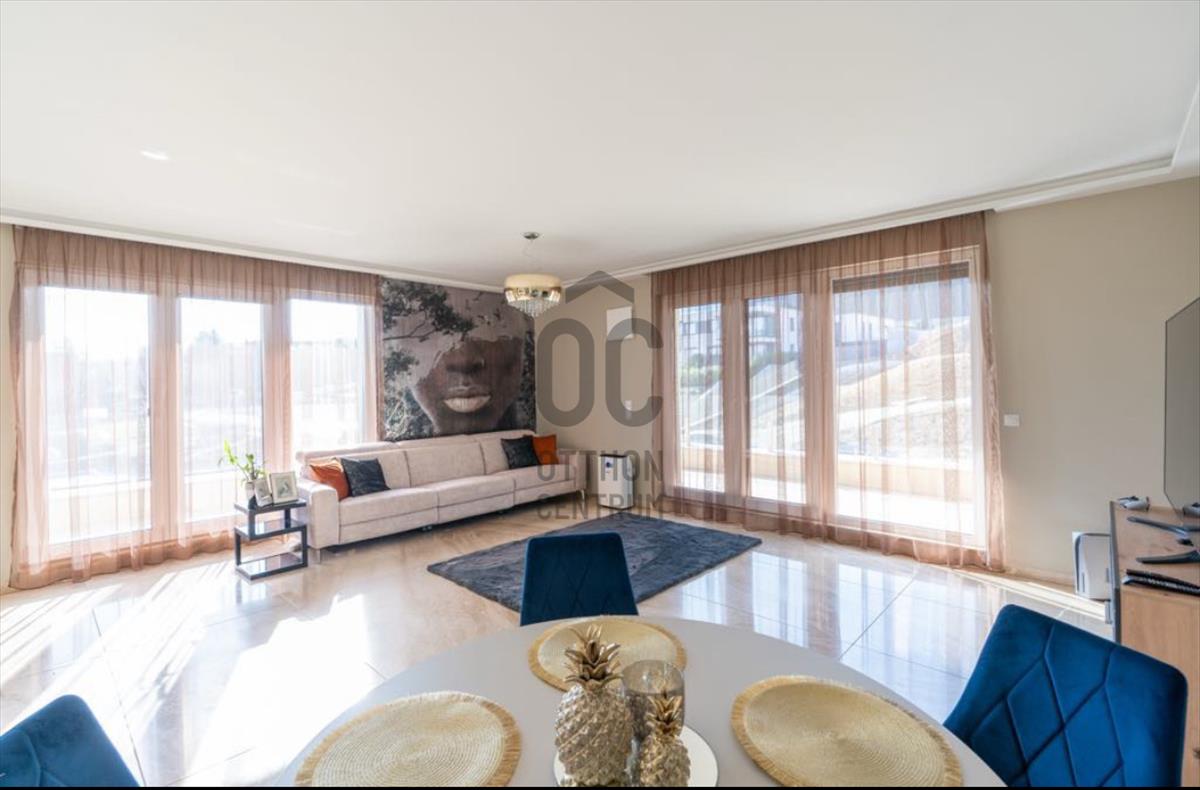 A nettó 110 m²-es lakás szíve a közel 50 m²-es nappali–étkező–konyha, ahol az impozáns belmagasság és a nagyméretű üvegfelületek páratlan térérzetet és természetes fényt biztosítanak. Ez a tér ideális a mindennapokhoz és a vendégfogadáshoz egyaránt, miközben a panoráma folyamatos vizuális élményt nyújt.