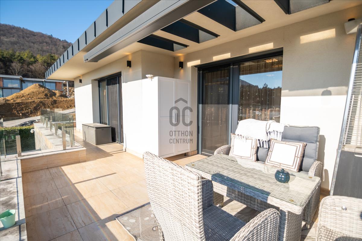 A belső terek természetes módon kapcsolódnak a pergolás, tágas teraszhoz és a két külön kijáratos erkélyhez, ahonnan zavartalan budai panoráma tárul elénk – reggeltől estig változó fényekkel, évszakonként új hangulattal.
