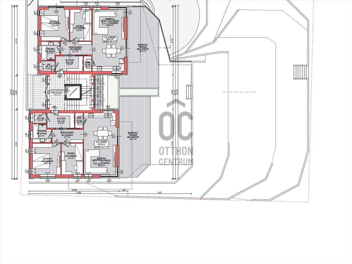 2. Lakás: 70nm, nappali+2 háló+33. 7 Nm-es terasz,