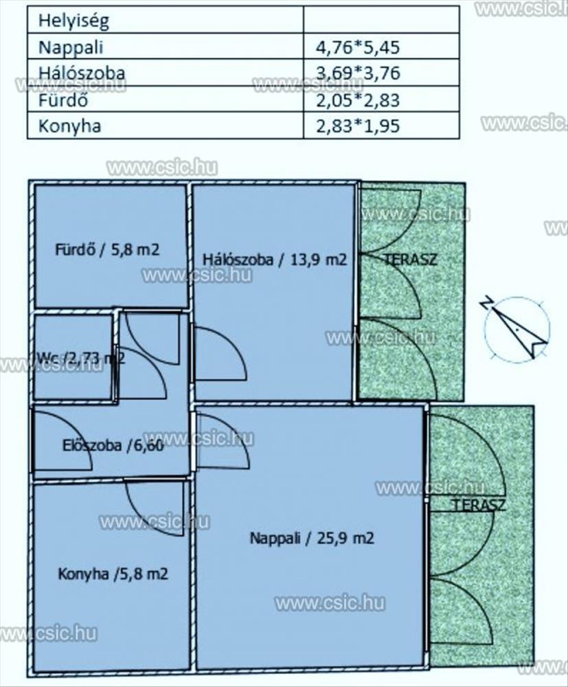 •Helyiségek: tágas nappali, külön hálószoba, konyha (kiadóablakkal kapcsolódik a nappalihoz), fürdőszoba, külön WC