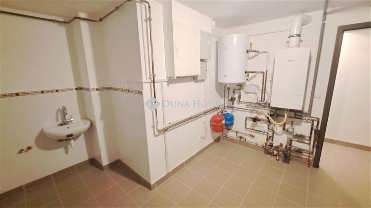 Az alagsorban ablakos és bevilágított mosókonyha található, valamint innen közelíthető meg egy közös tároló és a teremgarázs is.