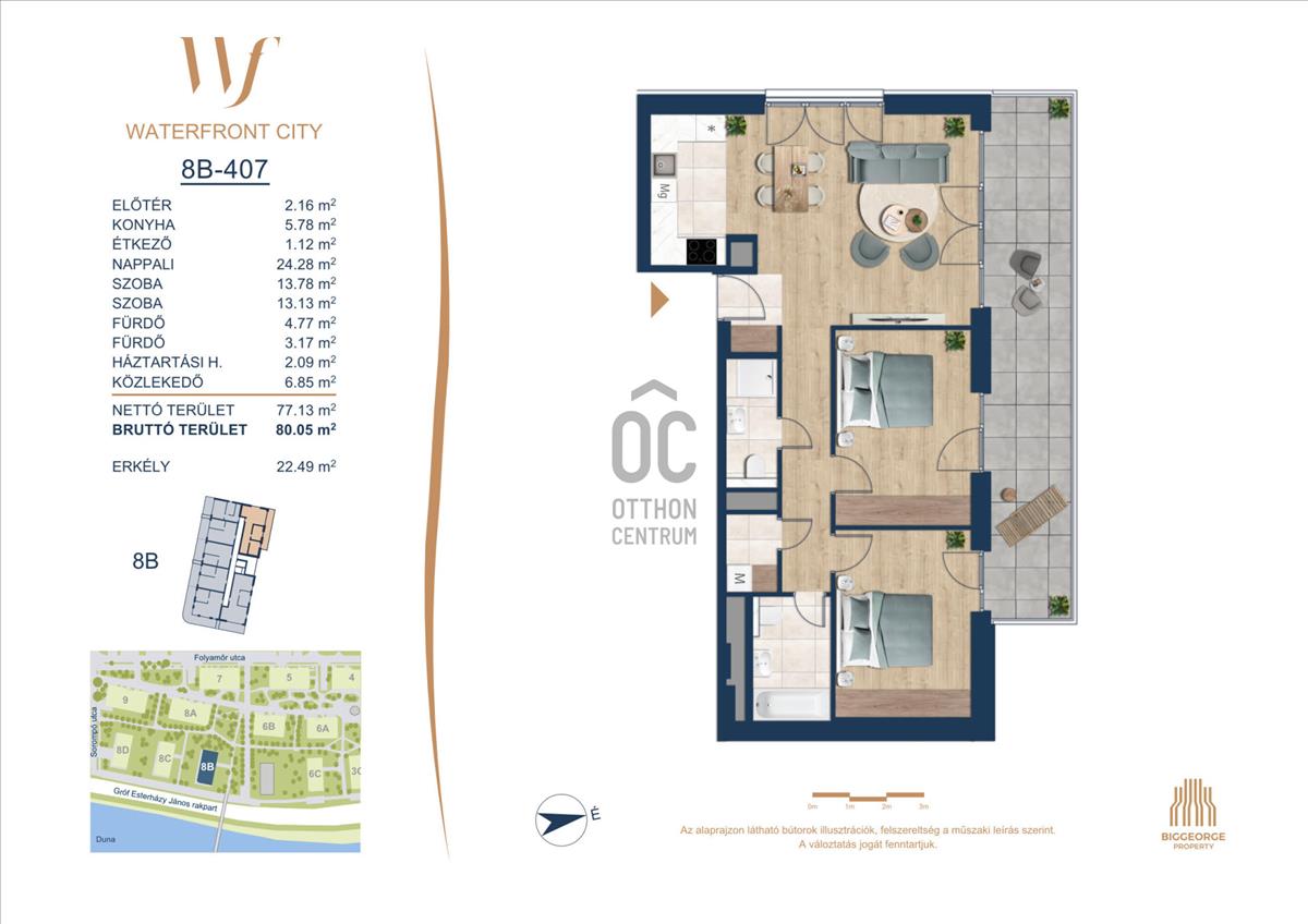 A Waterfront City egy új, modern városnegyed a 3. kerületben, ahol a természet közelsége és a városi kényelem tökéletes egyensúlyban van. a Duna-part közvetlen szomszédságában elhelyezkedő fejlesztés különleges atmoszférát kínál: a sétányt új épületek határolják, üzletekkel, kávézókkal és szolgáltatásokkal, amelyek élhető közösségi teret teremtenek.