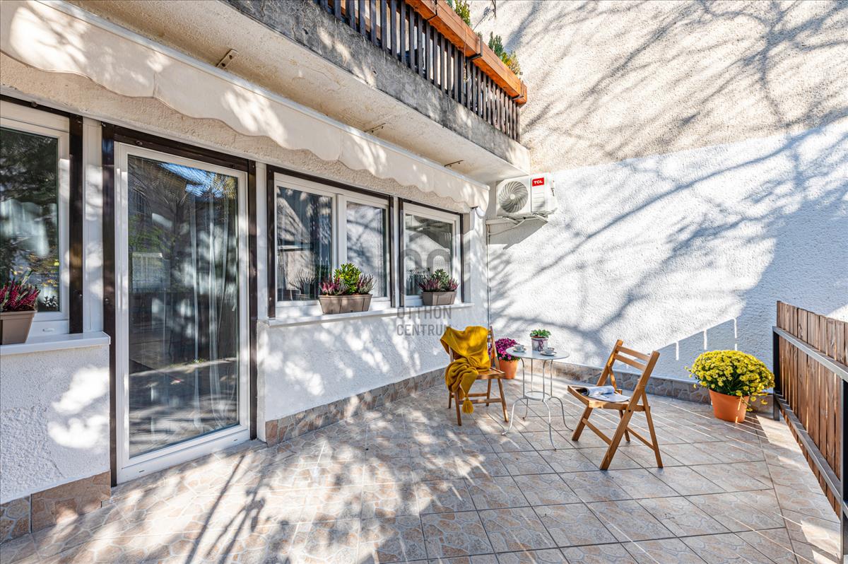 Budapest III. kerületének zöld, kertvárosias részén, a csendes Rozália utcában, rendezett, mindössze 6 lakásos társasház földszintjén eladó egy 62 m²-es + 20 nm terasz, teljes körűen felújított, fényes, kertkapcsolatos, tágas amerikai konyhás nappali, 2 hálószobás, fürdőszobás külön mellékhelyiséggel rendelkező, teraszos otthon.
