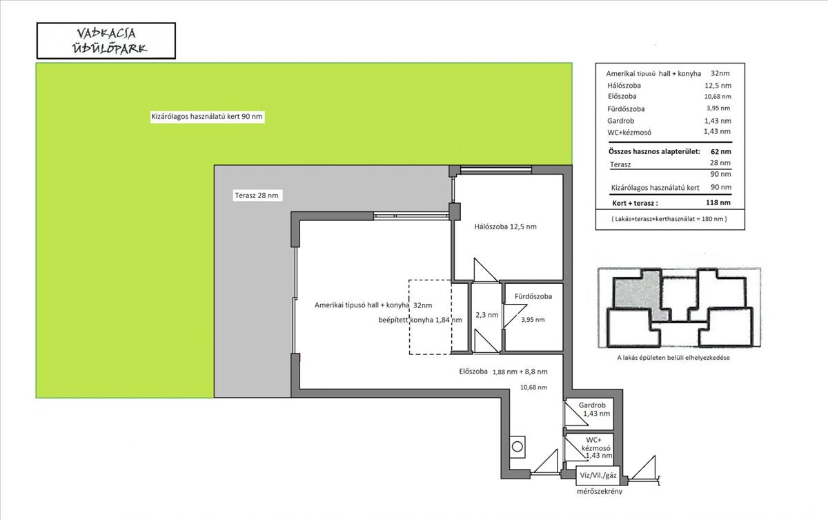 Az ingatlan előnye, hogy az alapító okiratban a lakáshoz tartozik egy közvetlen kertkapcsolat, ami zöld sövénnyel körbe vett füves terület, és kizárólagos használatot biztosít.