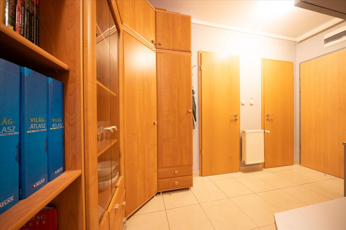 A lakás egyedisége, hogy minden helyiségből ki lehet menni a saját használatú teraszra, ami közvetlen kertkapcsolatos. Jó elrendezésű, amerikai konyhás nappalival rendelkezik, 2 Wc-vel. 2025-Ben 2 db hőszivattyús klíma lett kialakítva. a fűtés gáz kombi cirkó radiátoros höleadással 2025-ben kirszerüsítve.