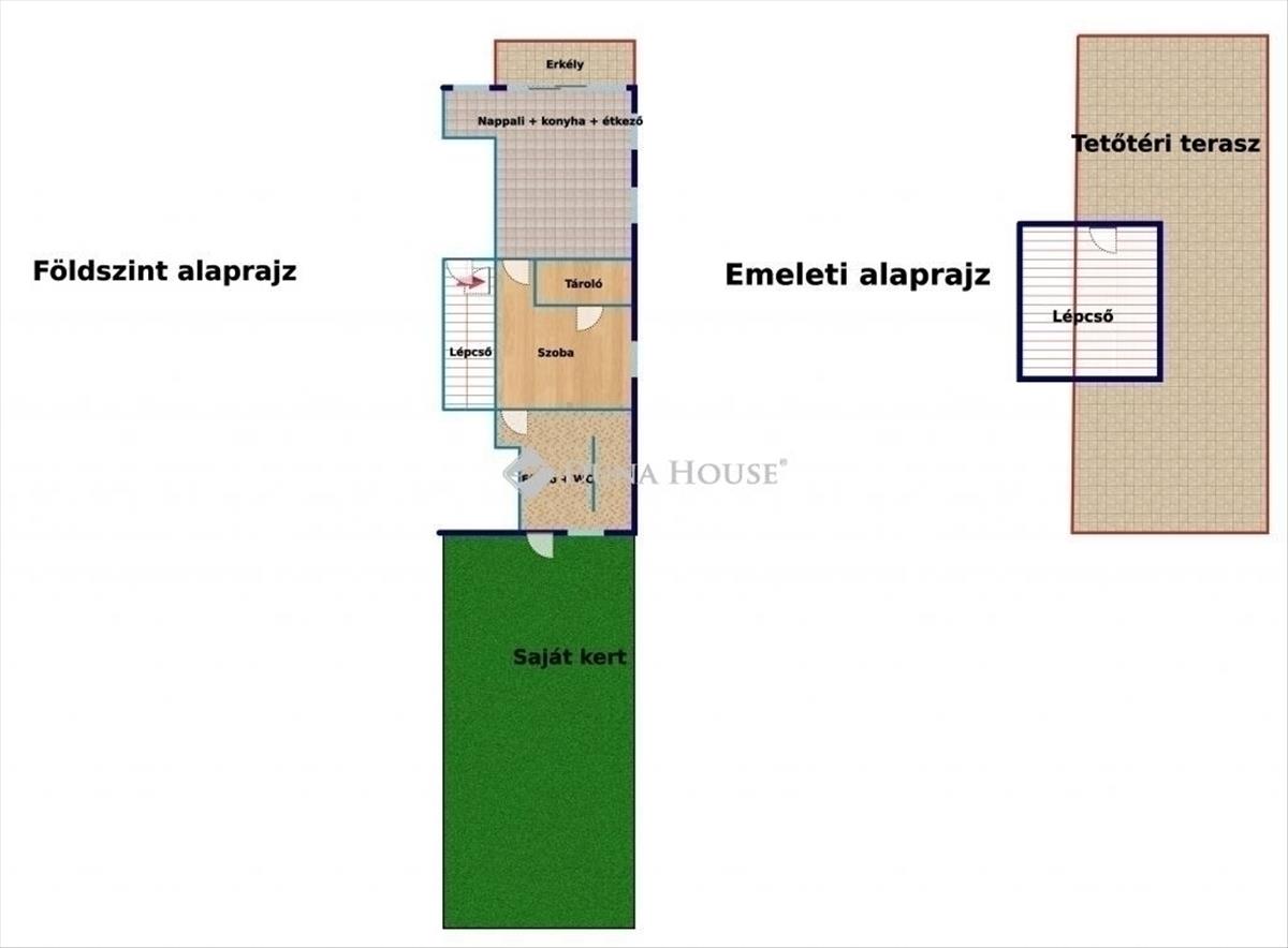 80 Nm lakrész + 10 nm erkély + 60 nm örök panorámás tető téri terasz + 200 nm saját KERT!