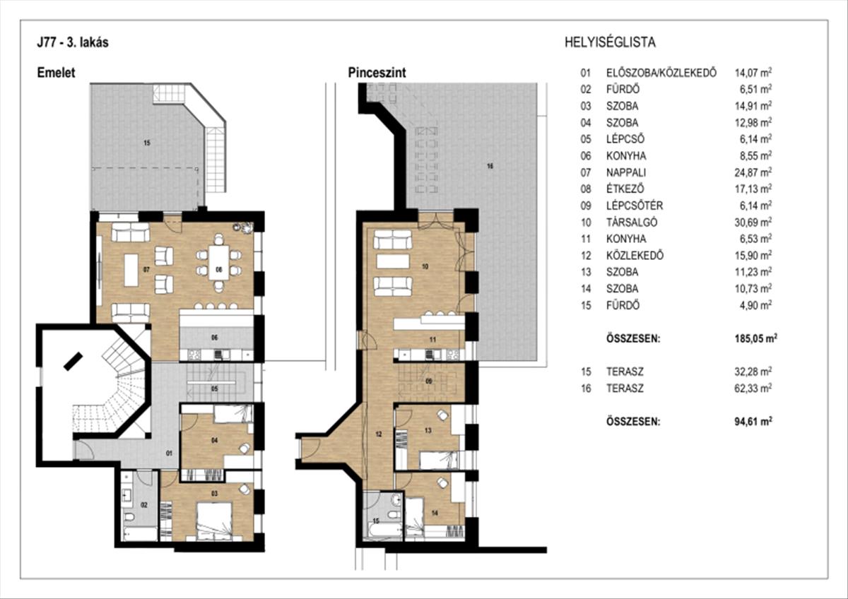 alakítottak ki, 1150 m2-en, 3 db exkluzív nagyméretű lakást, 6 db fűtött