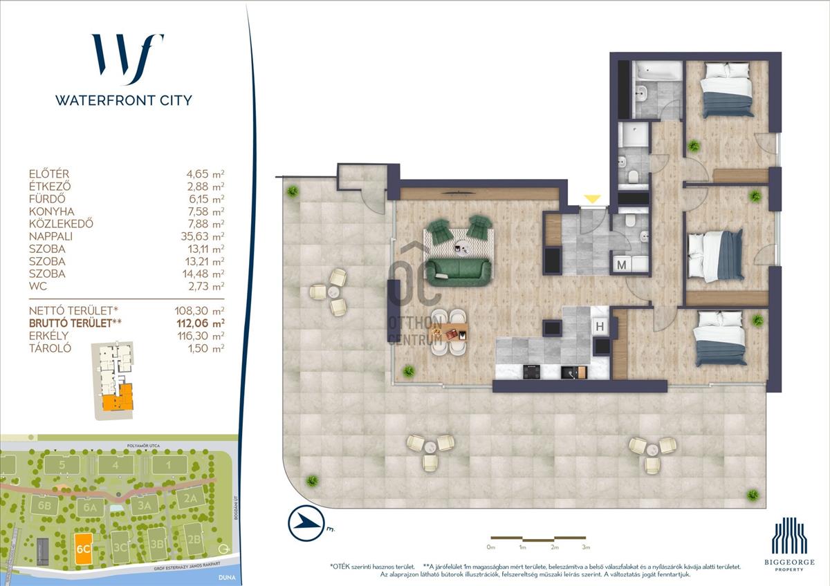 A Duna-parti elhelyezkedés, a modern lakópark adottságai és a nagy méretű terasz garantálják, hogy ez az ingatlan hosszú távon is értékálló maradjon. Bérbeadás szempontjából is prémium kategóriát képvisel, hiszen a panorámás, nagy alapterületű újépítésű lakások iránt folyamatos a kereslet.