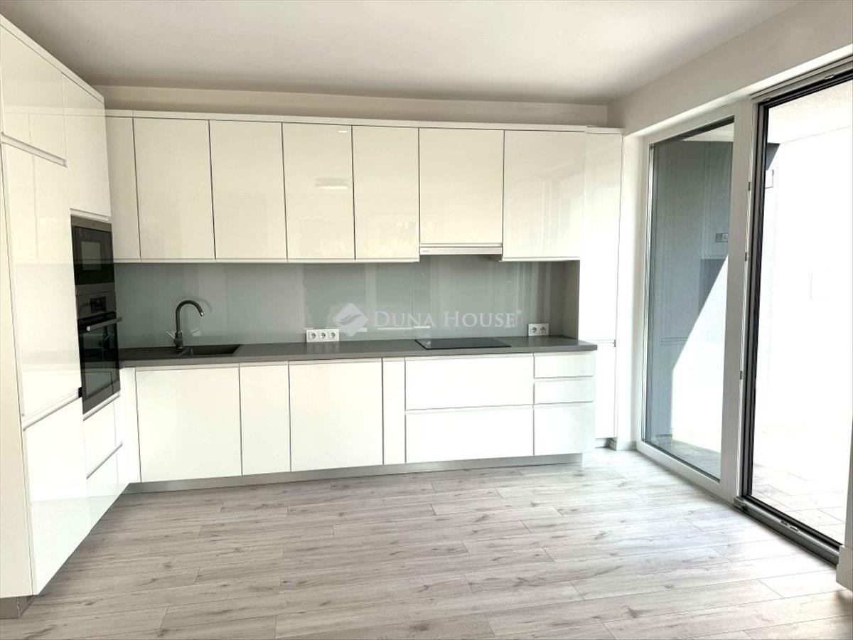 Az amerikai konyhás nappali és a konyha is közvetlen terasz- és kertkapcsolattal rendelkezik, így a beltéri és kültéri terek harmonikusan összenyílnak. a Dél-Keleti tájolásnak köszönhetően a lakás világos, napfényes.
