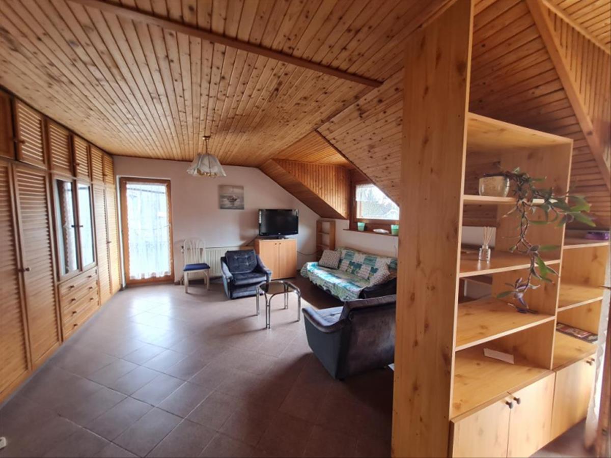 Az ingatlan kétszintes, az első emeleten egy nagyon szép állapotú nappali + 2 szobás, 75 m2-es lakás található konyhával, fürdőszobával, kamrával, előszobával, külön wc-vel.
