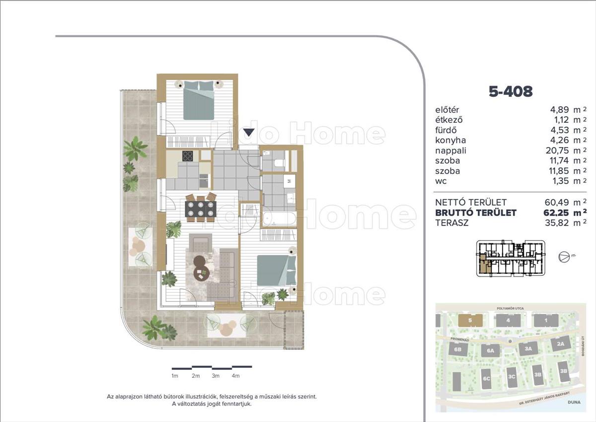 A hirdetésben szereplő 5-408 számú lakás paraméterei: