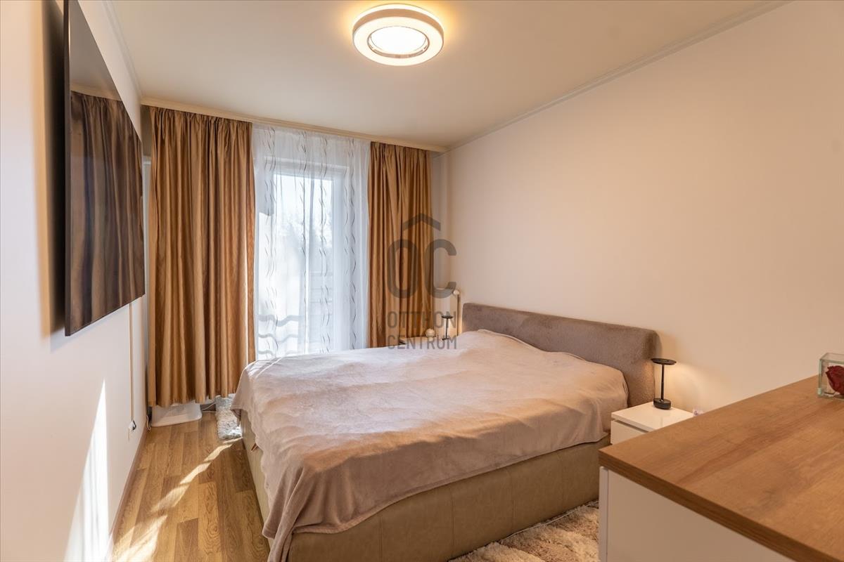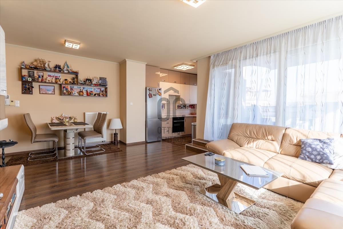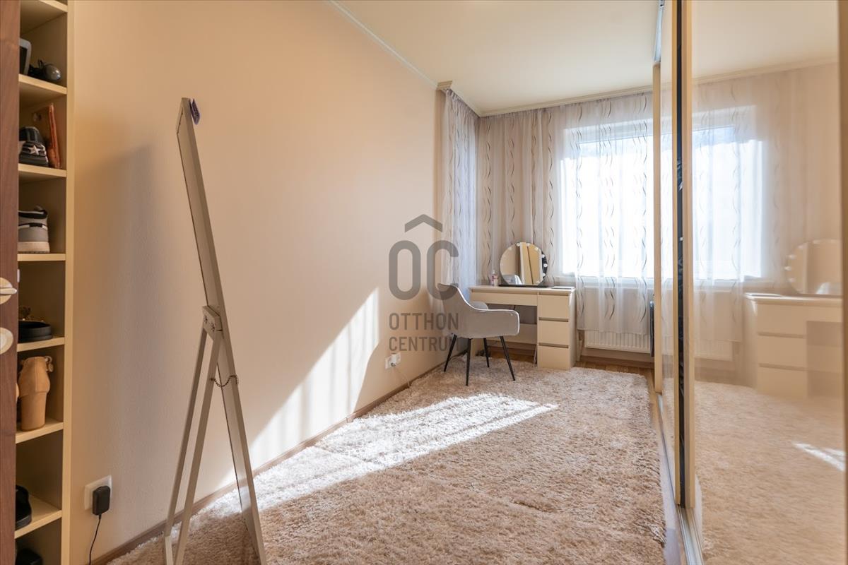 A tágas nappali világos és barátságos, ahol a napfény szinte minden szegletet elér. a fürdőszoba modern és jól felszerelt, míg a beépített bútorok és szekrények praktikus megoldásokat kínálnak a tárolásra, így a lakás mindig rendezett maradhat.