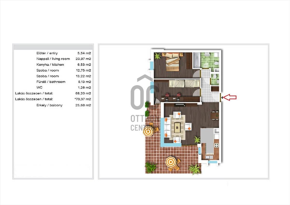 A 68, 2 négyzetméteres ingatlan három szobával rendelkezik, így bőséges teret kínál a mindennapi élethez.