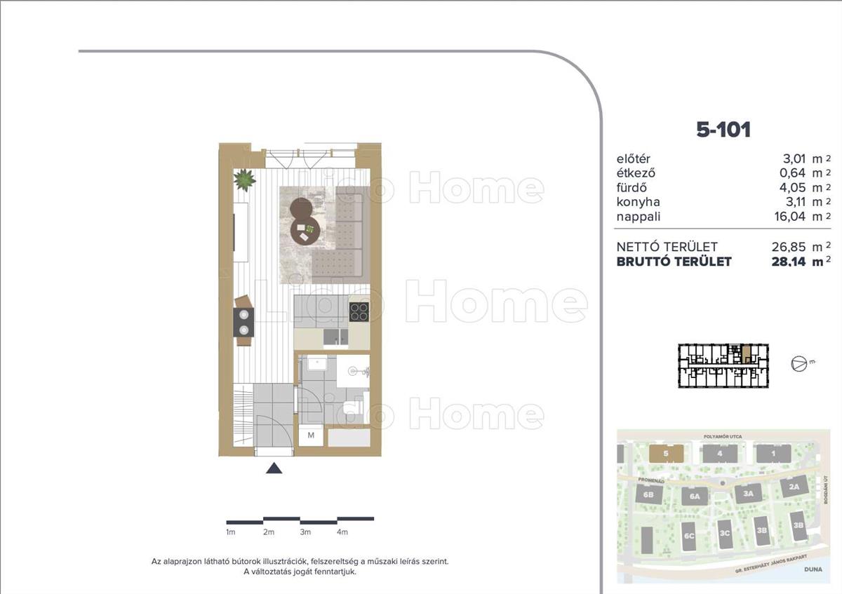 A hirdetésben szereplő 5-101 számú lakás paraméterei: