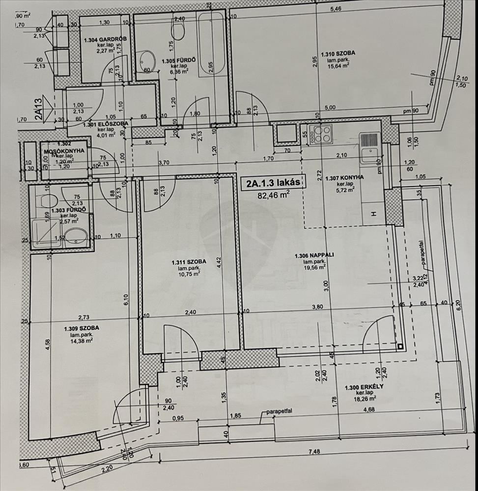 - 2 fürdőszoba (kádas és zuhanyzós)