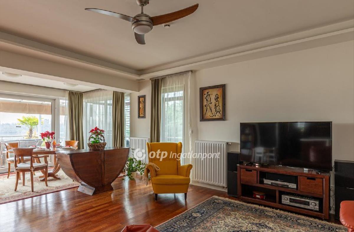 Eladó a Római-part exkluzív lakóparkjában egy 116 négyzetméteres, 3 szobás lakás (+ egy szobának kialakított loggia) 60 nm-es terasszal.