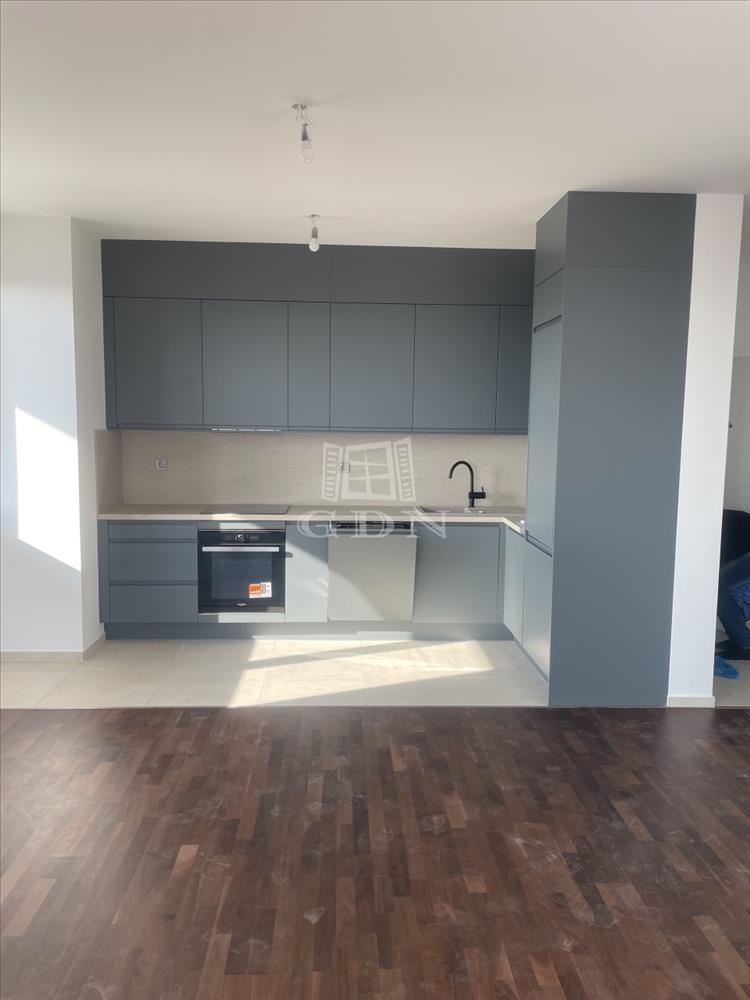 Amerikai konyhás, világos nappali beépített, gépesített konyhabútorral