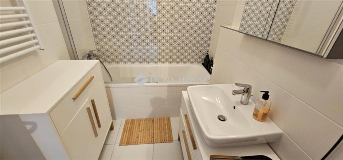 A lakás elrendezése: tágas, amerikai konyhás nappali étkezővel (34 nm ), 2 hálószoba (13 nm + 12 nm ), modern fürdőszoba káddal és WC-vel, külön wc. a konyha teljesen gépesített (beépített mosogatógép, hűtő, sütő), a lakás részben bútorozva eladó (étkezőasztal, székek, kanapé, szekrény). Minden szobában redőny található (távirányítós), a mennyezeti hűtés-fűtést pedig egy klíma egészíti ki.