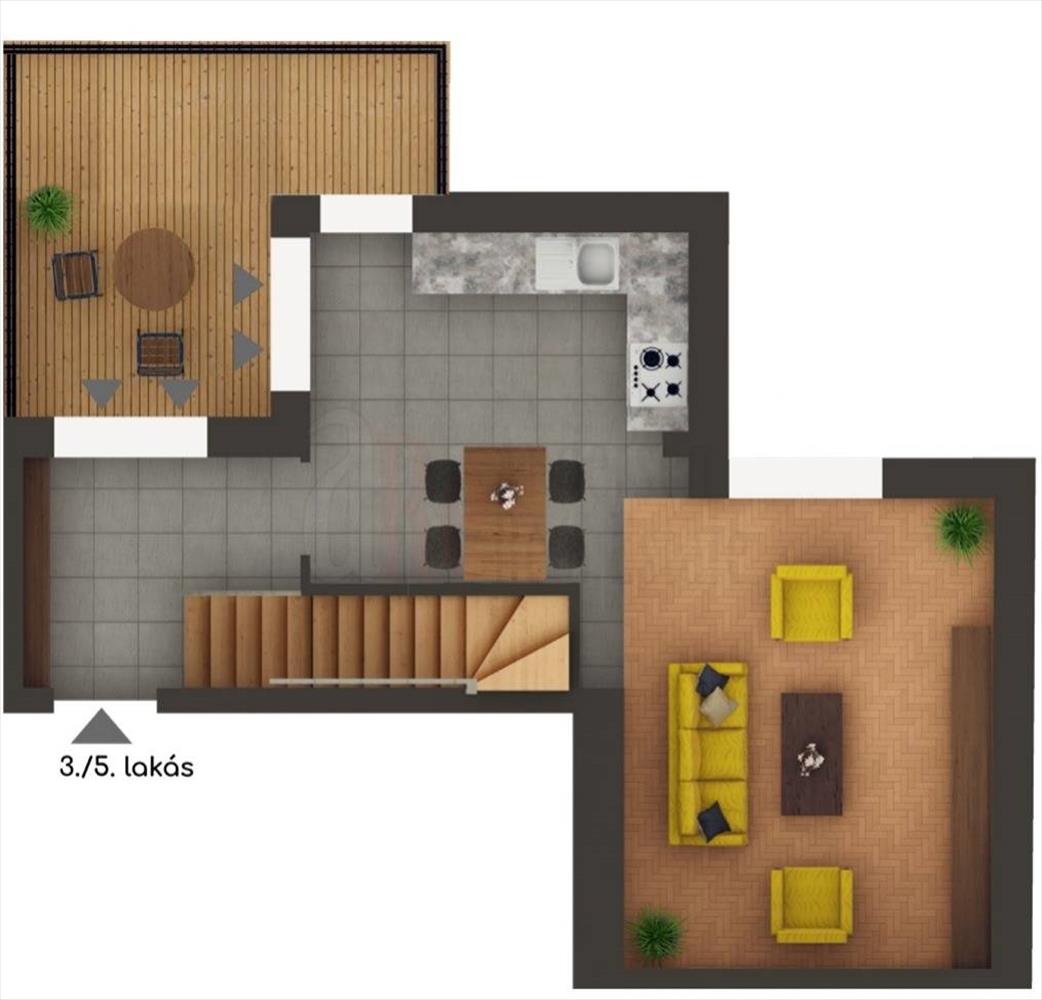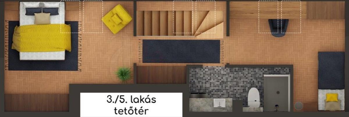 Az ingatlan belső kétszintes kialakítása lehetővé teszi, hogy az alsó és a felső szint külön-külön is funkcionáljon, akár független lakóegységként. Ez különösen vonzó lehet befektetők számára, hiszen két bérlőt is kiszolgálhatnak egyszerre, növelve a bérleti hozamot és rugalmasságot a piaci igényekhez igazodva.