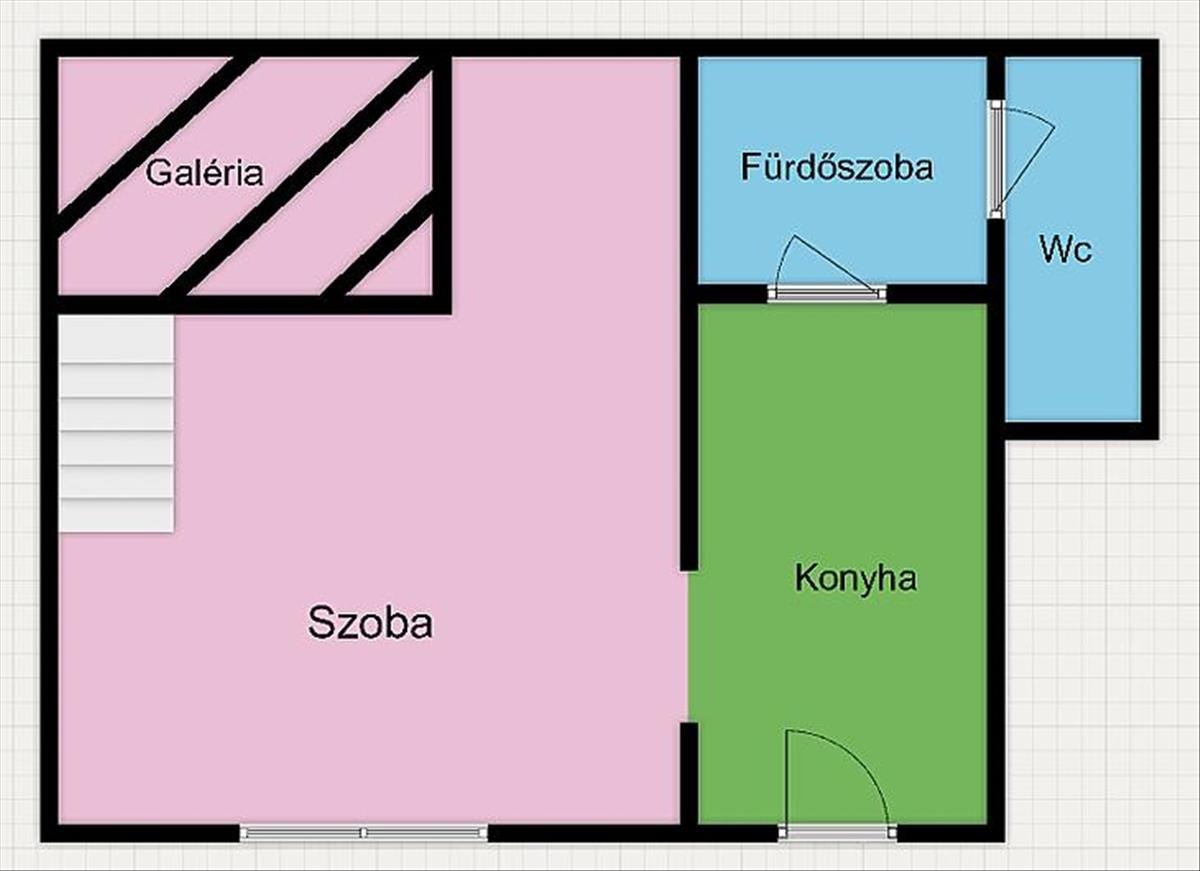 Praktikus elosztás: 1 szoba + galéria
