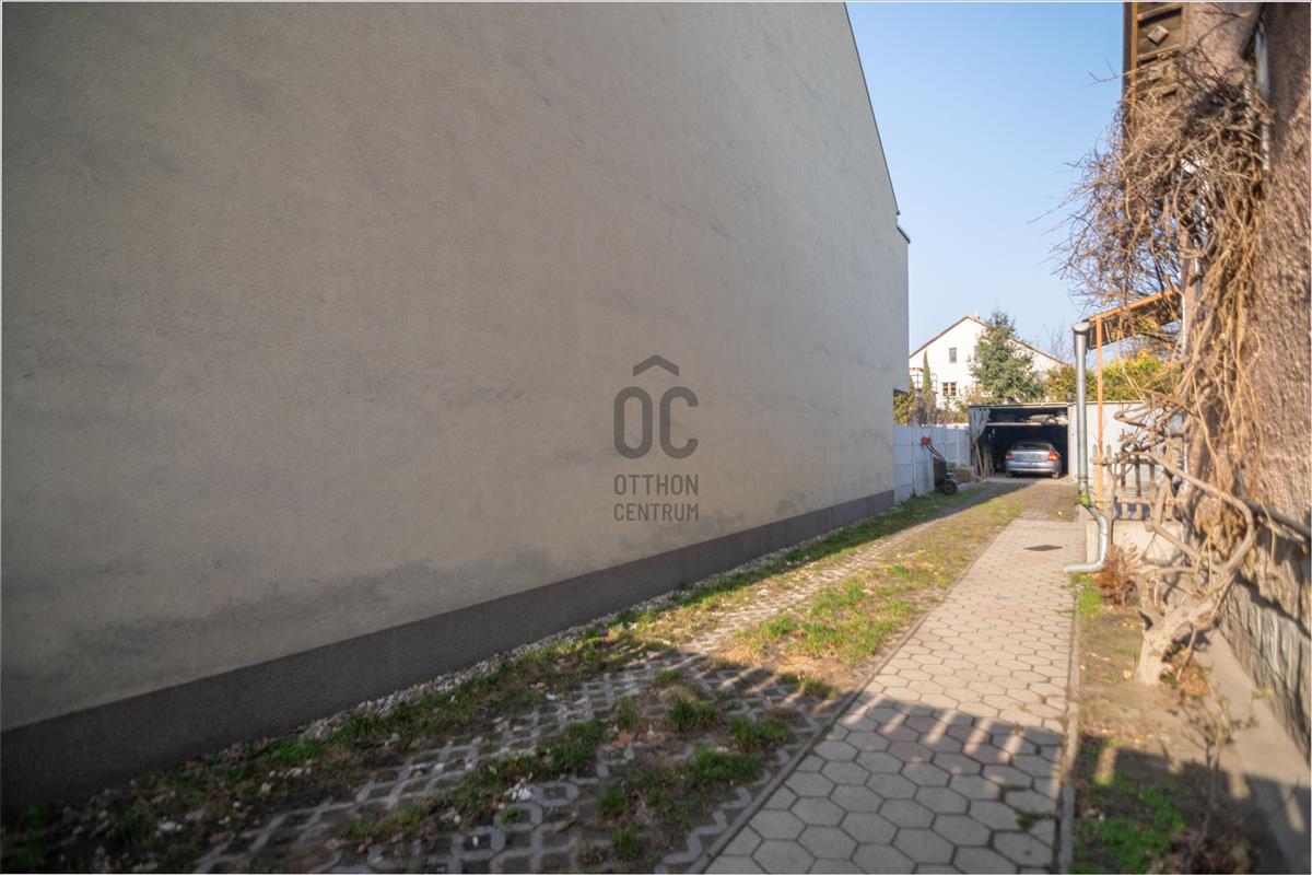 Az ingatlan egy 487nm -es telken helyezkedik el, egy másik lakással osztozva. a két lakás külön kertekkel, udvarral rendelkezik, a bejárat és udvar egy része közös, ügyvédi megosztás készült, így a tulajdonosok kényelmesen laknak egymás mellett. a saját kert 80nm -es. Parkolásra van lehetőség az udvaron belül.