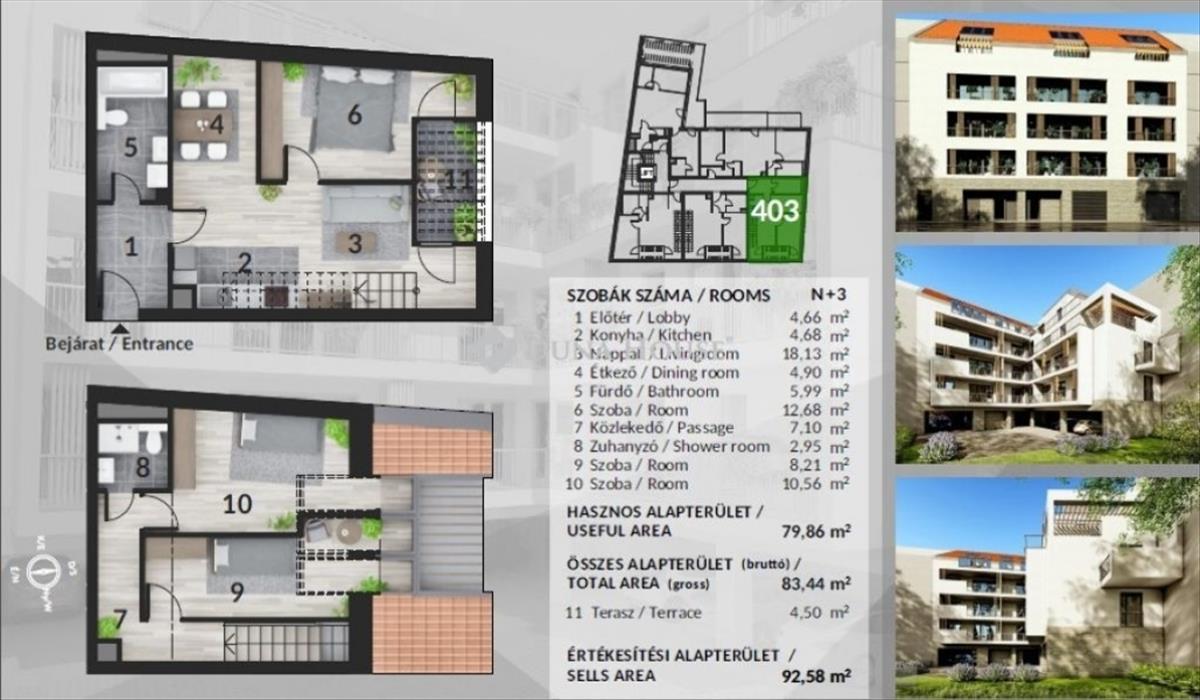 Budapest 4. kerületének megújuló részében, a Szent István tér közelében épül ez a 23 lakásból és egy üzlethelyiségből álló társasház. a lakásokat úgy alakították ki, hogy minden ingatlankereső megtalálja a számára ideális otthont, minőségi életterekkel. Az épület mélygarázzsal épül meg, és a lakóterek a földszinten, 3 emeleten és a tetőtérben helyezkednek el, az épületet egy 8 személyes lifttel szerelik fel. Az épületben megtalálható lesz nappali + hálós, nappali + 2 hálós (amiből 3 lakás belső kétszintes), illetve nappali + 3 hálós lakás is. a társasház főbb műszaki jellemzői:Kiemelkedően jó, a energiahatékonyságú besorolású lesz az épület, ezért a lakások rezsije várhatóan kifejezetten alacsony lesz. Fűtését hőszivattyú által működtetett padlófűtés biztosítja majd, a mai kor elvárásainak megfelelően, fancoil hűtés előkészítéssel. Kiépítésre kerül továbbá házközponti szellőztető-rendszer, és a lakások közötti elválasztó falak a jelenleg kapható legjobb hanggátló - falazóelemekből épülnek, a nyugalom maximális biztosítására. Elektromos redőny előkészítés, redőnytok beépítés, riasztó rendszer előkészítése, műanyag szerkezetű, hőszigetelt üvegezésű nyílászárók kerülnek előszerelésre illetve beépítésre. a társasház ideális választás lehet befektetési célból, fiatal pároknak első otthonként, illetve nagycsaládosoknak CSOK és kedvezményes hitelek igénybevétele mellett. Könnyített fizetési ütemezéssel vásárolhatók meg a lakások: 20% kezdő befizetéssel, 80% pedig a kulcsátadáskor kerül megfizetésre. a lakások foglalása jelenleg regisztrációs szerződés aláírásával lehetséges. Opcionálisan lehetőség van teremgarázs beállók illetve tárolók megvásárlásra is (nem kötelező) Teremgarázs parkoló árak: 7, 5 m. a parkolóhelyen elektromos töltő felár ellenében igényelhető. Tárolók: 800. 000. -/m2-től vásárolhatók. Várható átadás: 2025. 12. 31. További információkért keressen bizalommal!