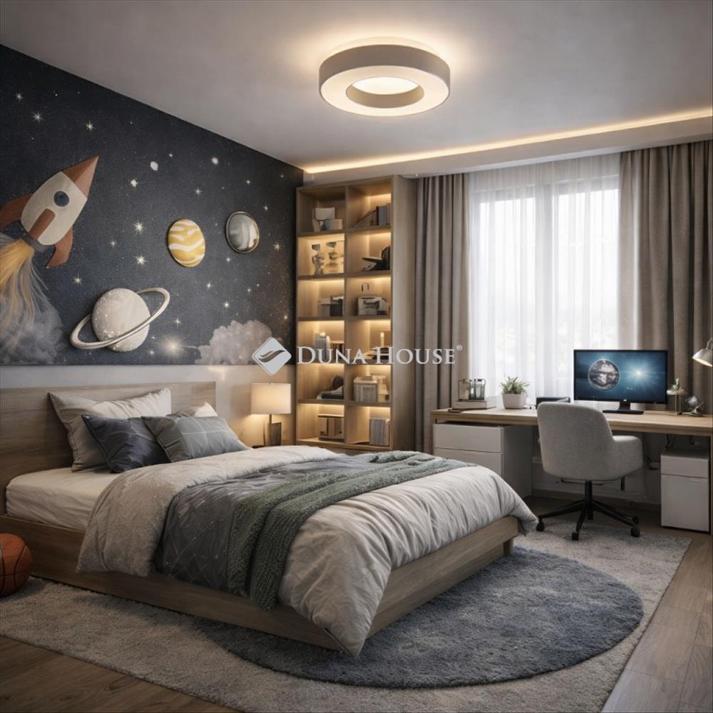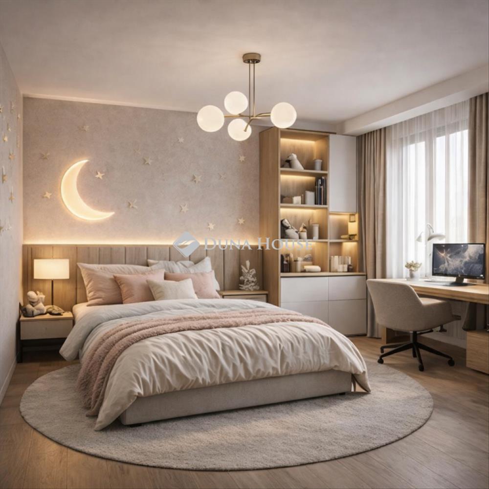 Ez a lakás kifejezetten jó választás lehet kétgyermekes családok számára, akik tágas, jól tagolt otthont keresnek zöld, nyugodt környezetben. a külön hálószobák kényelmes életteret biztosítanak a család minden tagjának, miközben a nappali-konyha közös családi térként szolgál.