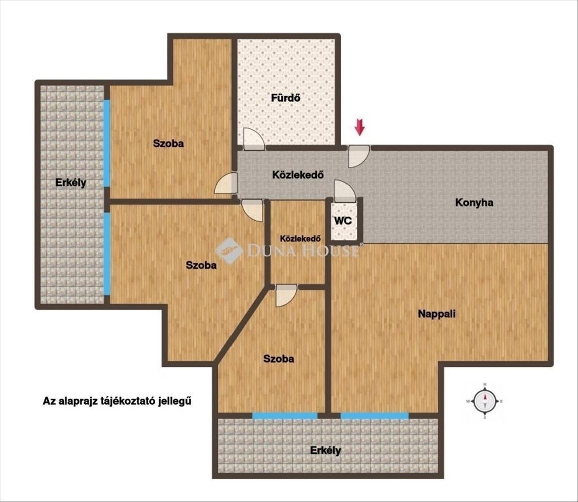 3 külön nyíló hálószoba jól bútorozható, praktikus elrendezés