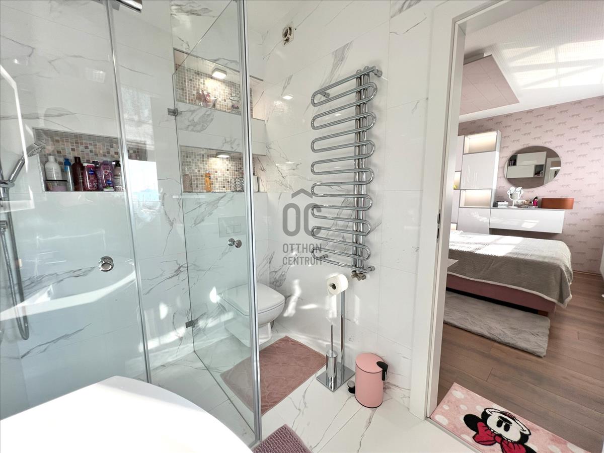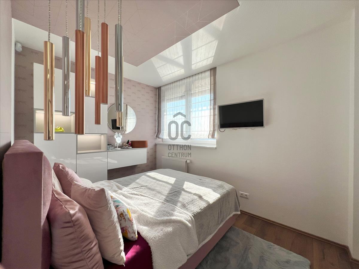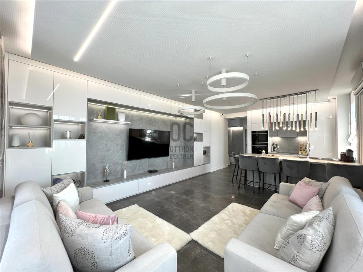Az ingatlan nettó 84nm alapterületű. Helyiségei: előszoba, nappali-konyha-étkező, 3 hálószoba, 2 fürdőszoba-WC, külön wc. a nappaliból kijuthatunk a 16nm-es teraszra, ahonnan dunai panoráma tárul elénk. Az ingatlan magas minőségű bútorokkal van berendezve. Minden bútor a vételár részét képezi. a lakásban "smart home" rendszer van. Minden nyílászáró elektromos redőnnyel felszerelt.