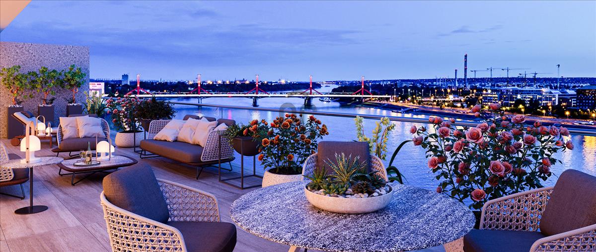 13, 20 m²-es szeparált terasz, lenyűgöző kilátással a Dunára és a városra