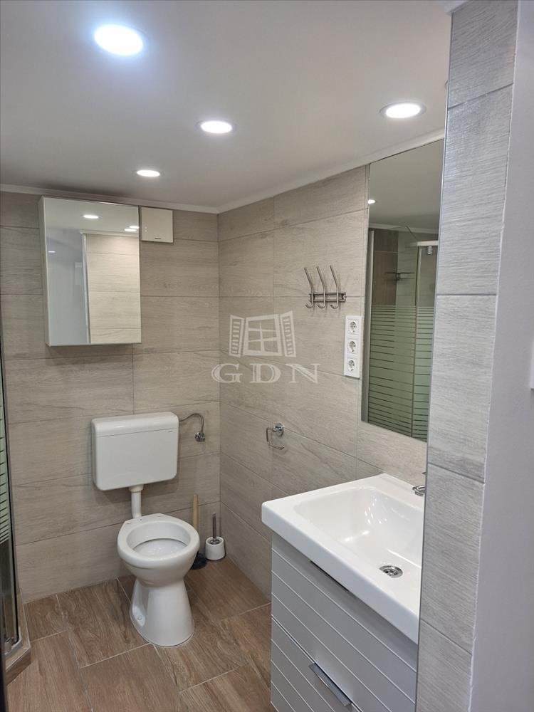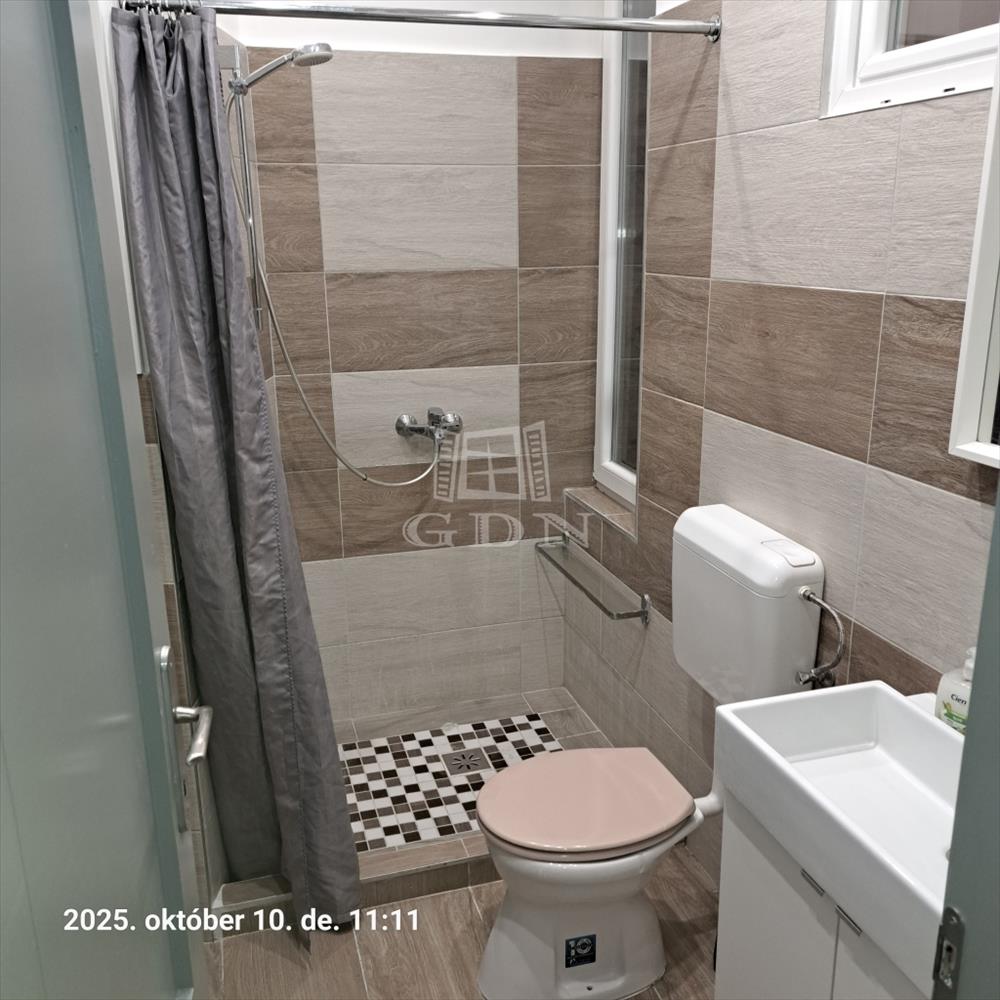 A 58 m²-es lakás tágas, világos, két fürdőszobás, akár két külön bérlő számára is ideális.