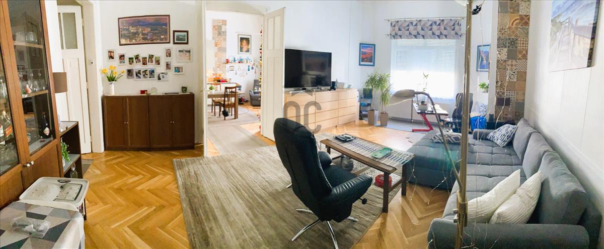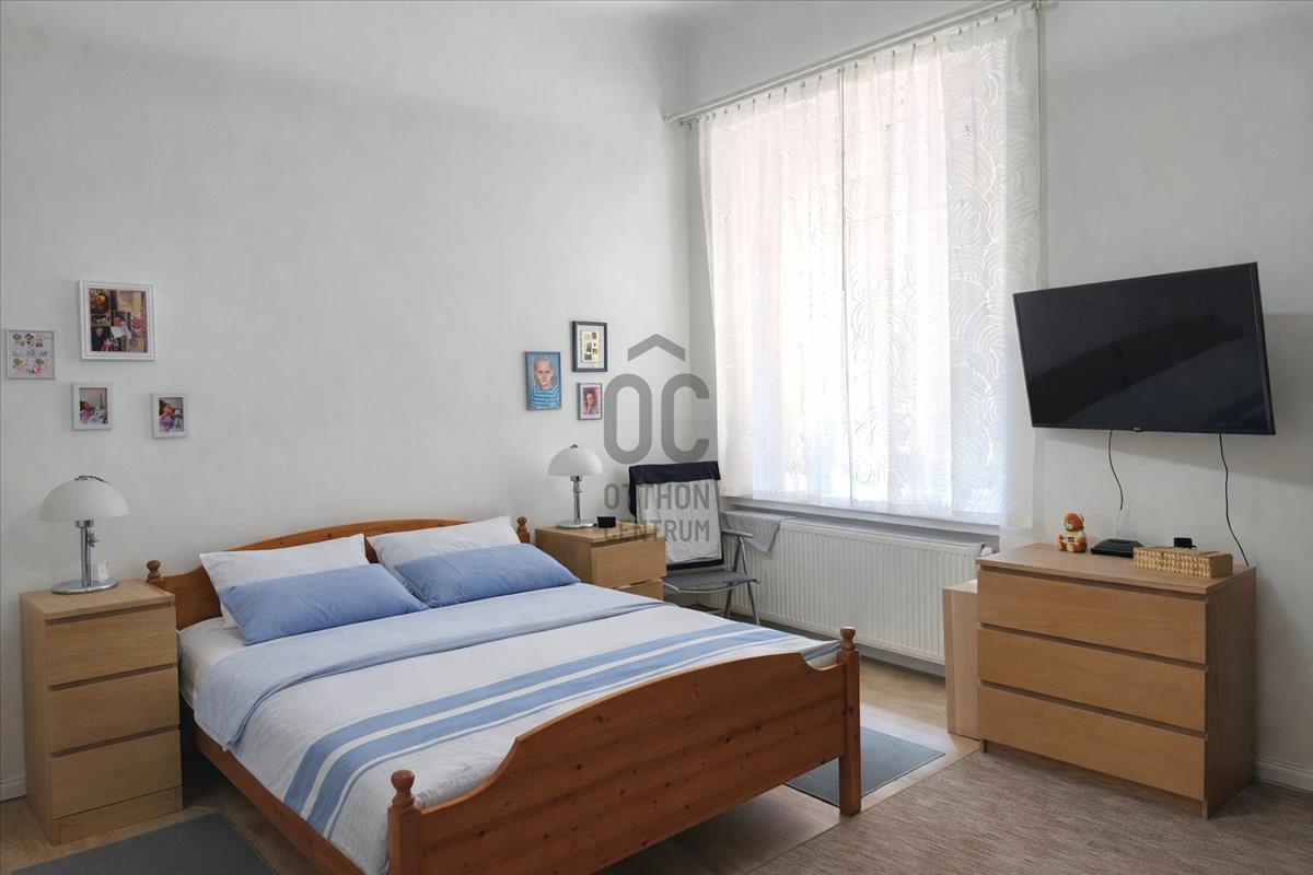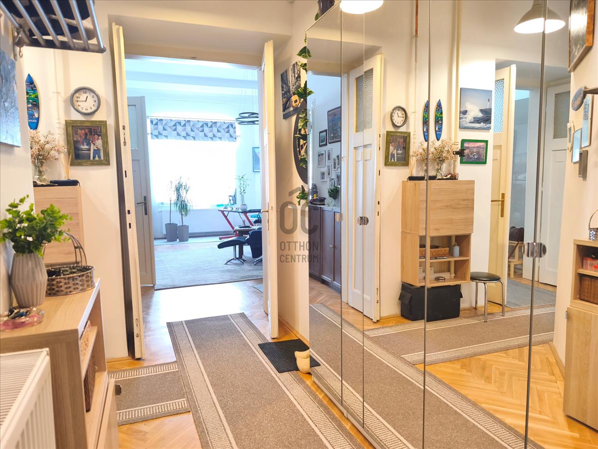 A lakás magasan, még félemelet felett, az első emeleten helyezkedik el, és hatalmas ablakainak köszönhetően rendkívül világos. 2022-Ben mind műszakilag, mind esztétikailag teljeskörű felújításon esett át. a fűtést biztonságos és takarékos kondenzációs Viessmann kazán szolgáltatja. a nappaliba és a két hálószobába hütő-fűtő klíma is felszerelésre került.