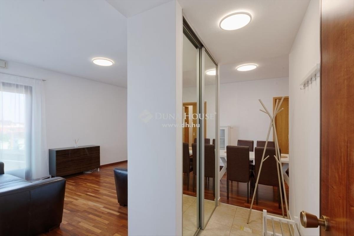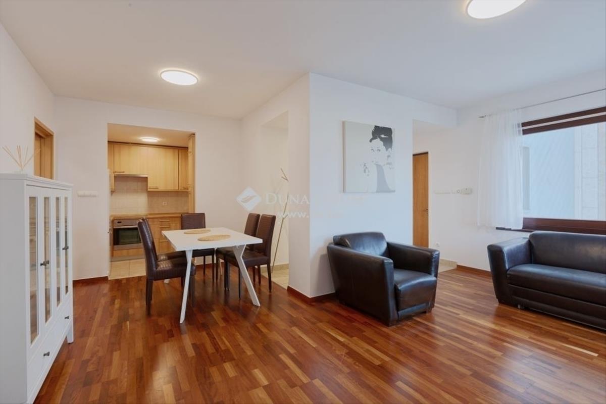 Kiemelt szolgáltatásokat nyújtó elit társasházban, magasemeleti, panorámás, nappali+hálós lakás luxus környezetben eladó! Az ingatlan 57 nm-es, amerikai konyhás nappalival, tágas hálószobával, fürdővel, külön WC-vel, beépített, gépesített konyhával, beépített gardróbszekrényes előszobával rendelkezik. a lakás minden kényelmi opcióval felszerelt: elektromos fémredőny, légkondicionáló, fűtés: fan-coil és padlófűtés. a ház minden szempontból megfelel a luxus követelményeknek: 24 órás portaszolgálat, 24 órás őrzés-védés, közös területek (külső-belső + garázsszintek) kamerázottak, Dunára néző uszoda és jakuzzi (úszómester állandó felügyelete alatt), finn szauna, infraszauna, gőzkabin, biztonsági rendszerrel ellátott garázs. Az élhetőséget maximálisan kiszolgálja, hogy egy emeleten 4 lakás helyezkedik el, melyeket két lift lát el az álladó rendelkezésre állás biztosítására. a teremgarázshely nincs benne az árban, de igény esetén megvásárolható. (15 MFt)A házban kialakításra került wellness részleg is: úszómedence, jacuzzy, szauna, infraszauna és gőzkabin, jól felszerelt konditerem is (kardiogépek is), beépítésre kerültek. a wellnesst az épület lakói és vendégeik ingyenesen használhatják, a kis lakásszám miatt mindig kulturáltan használható, soha nem zsúfolt. További részletekeért keressen bizalommal!Irányár: 120000000 Ft
