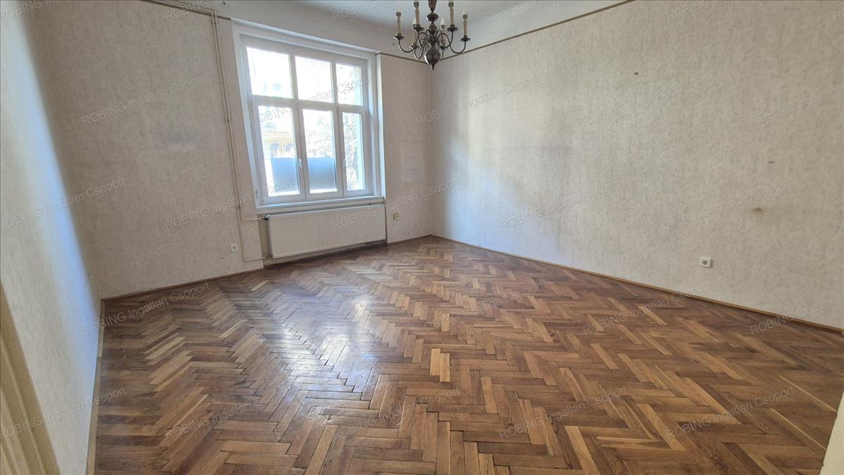 A lakás 81nm -es, jelenlegi elosztása szerint 2 tágas utcai szoba, előtér, fürdő, illetve egy szintén nagy méretű, konyha-étkező található meg benne.